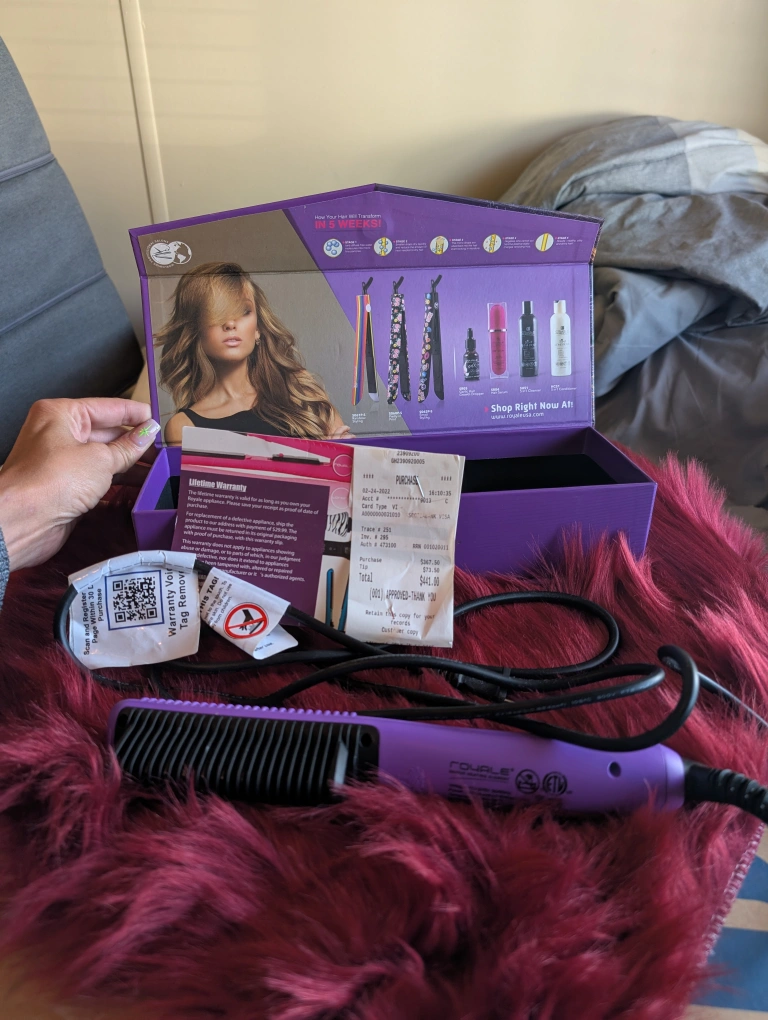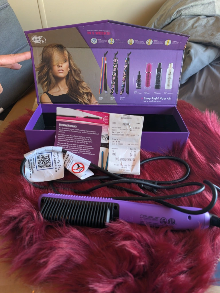 Selling a Royale Multi-Purpose Ceramic Hair Brush in purple! It comes with its original box and a heat resistant pouch. The receipt shows it was originally purchased for $441.00. Beauty never gets old! never used!!!
