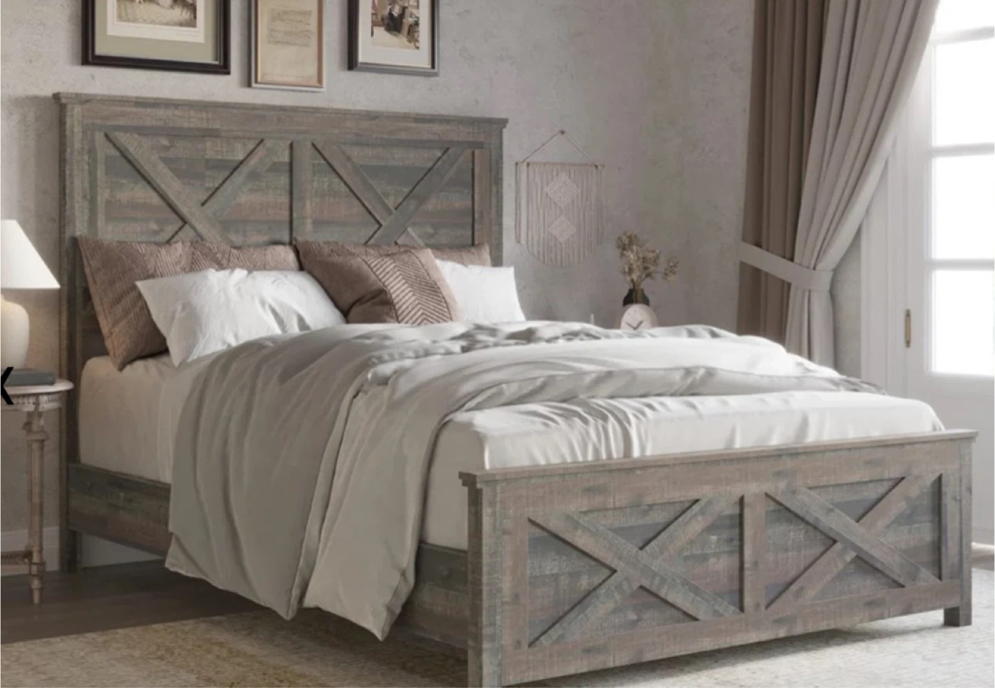 Selling a rustic-style bed frame, perfect for adding a touch of farmhouse charm to your bedroom! The grey wood finish gives it a cozy and inviting feel. It's in great condition and ready for a new home!