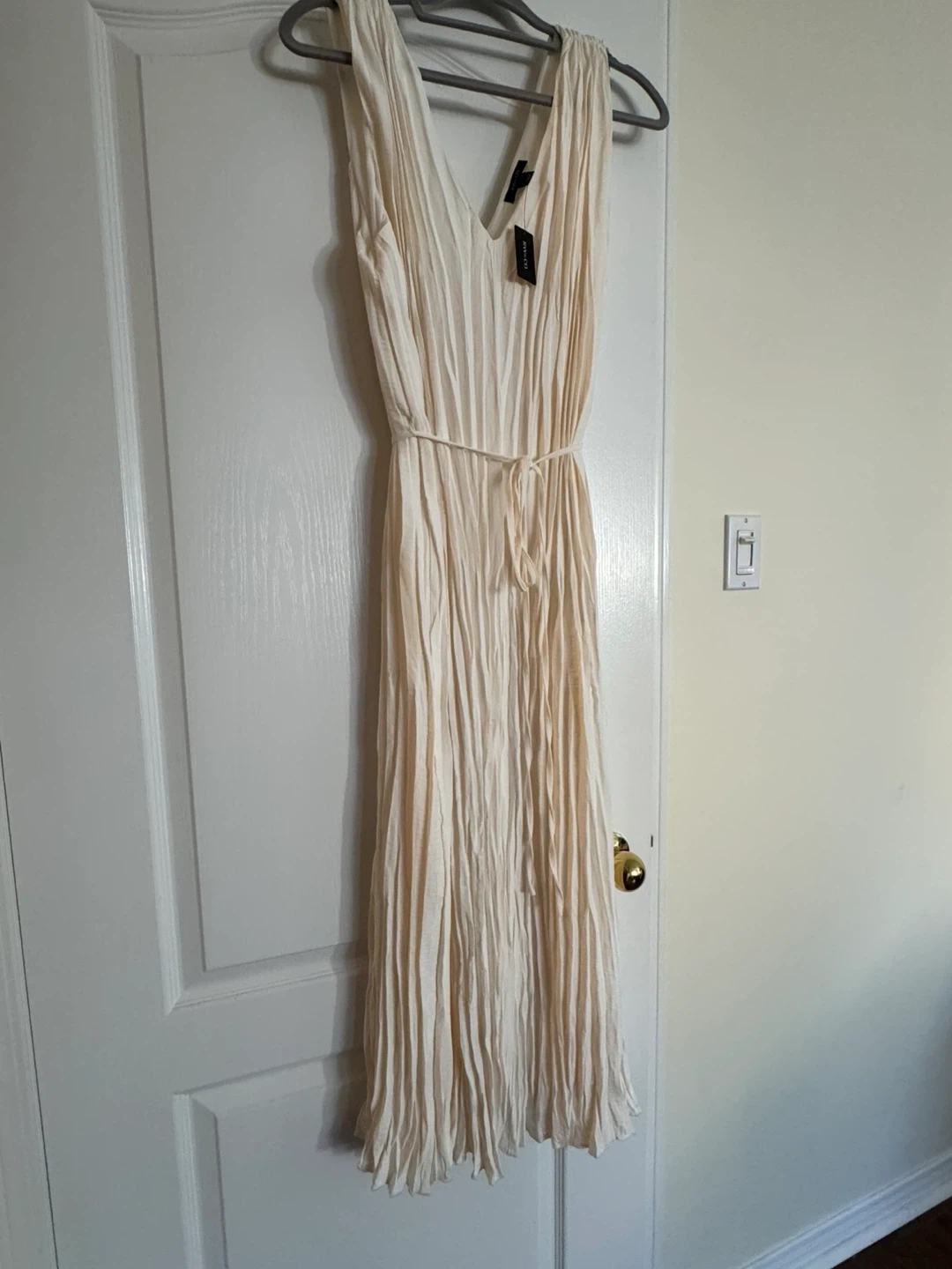 Selling a brand new with tags RW & CO. pleated maxi dress in size XL! This dress is a beautiful cream colour and features a flattering V-neck and a delicate tie at the waist. It's perfect for a summer day out or a special occasion. Originally bought for $119.90