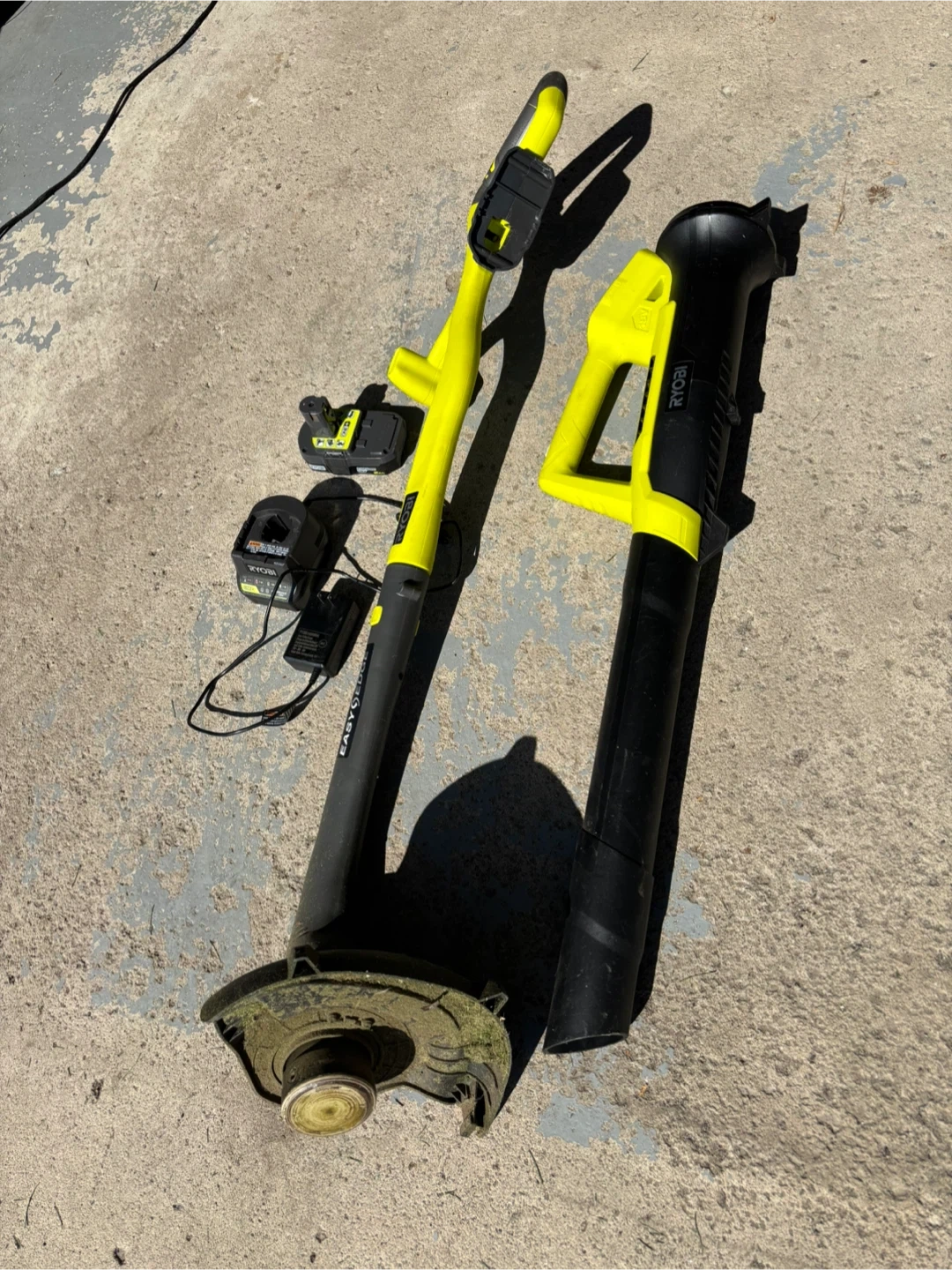 Selling a Ryobi 18V trimmer and blower combo. Both are in excellent working condition and ready to tackle your lawn care needs. Includes the battery and charger!