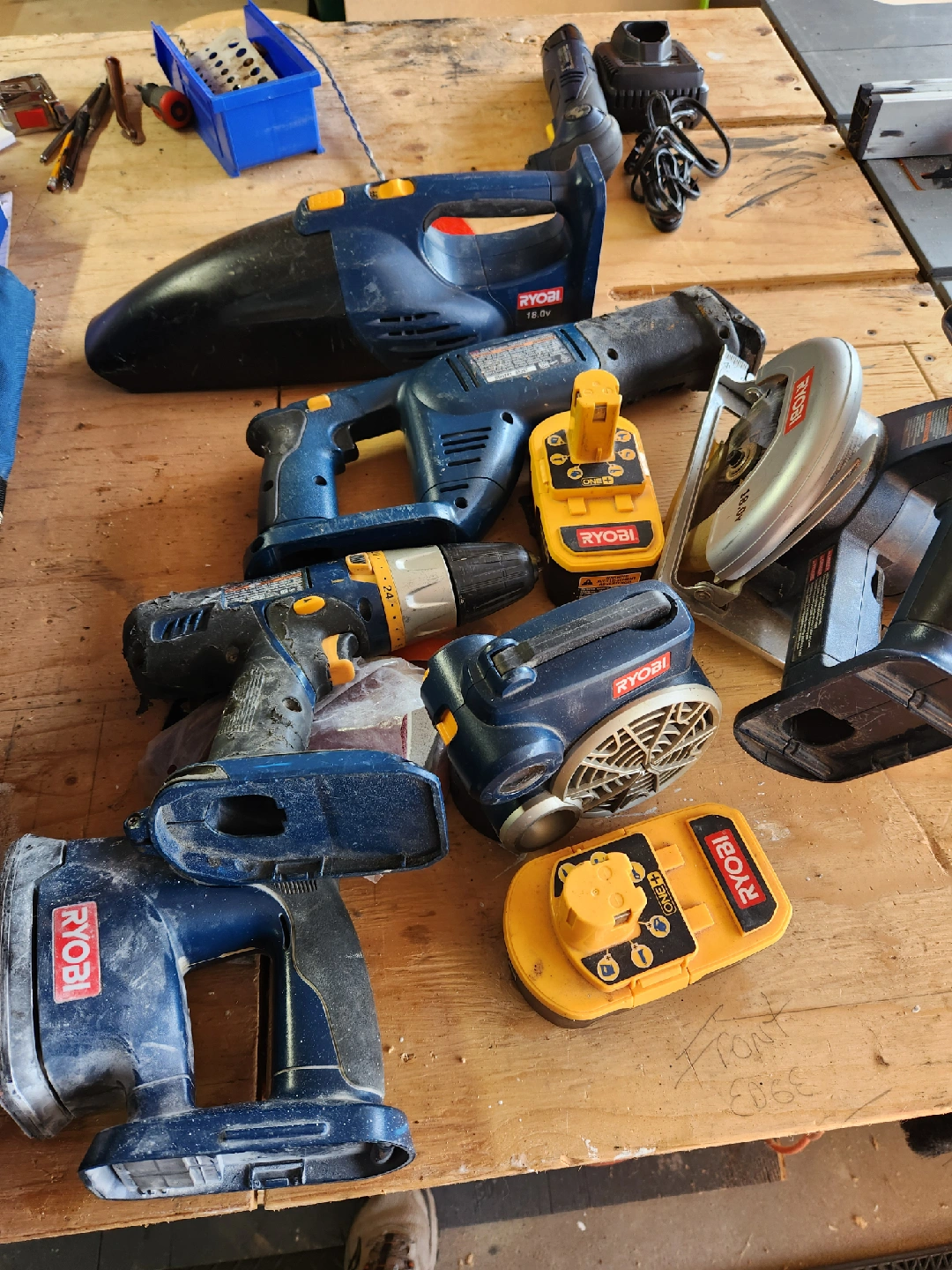 Ryobi 18 volt tool set the OnePlus platform 6 tools the bag two batteries and charger. all tools are working charger works and batteries hold the charge