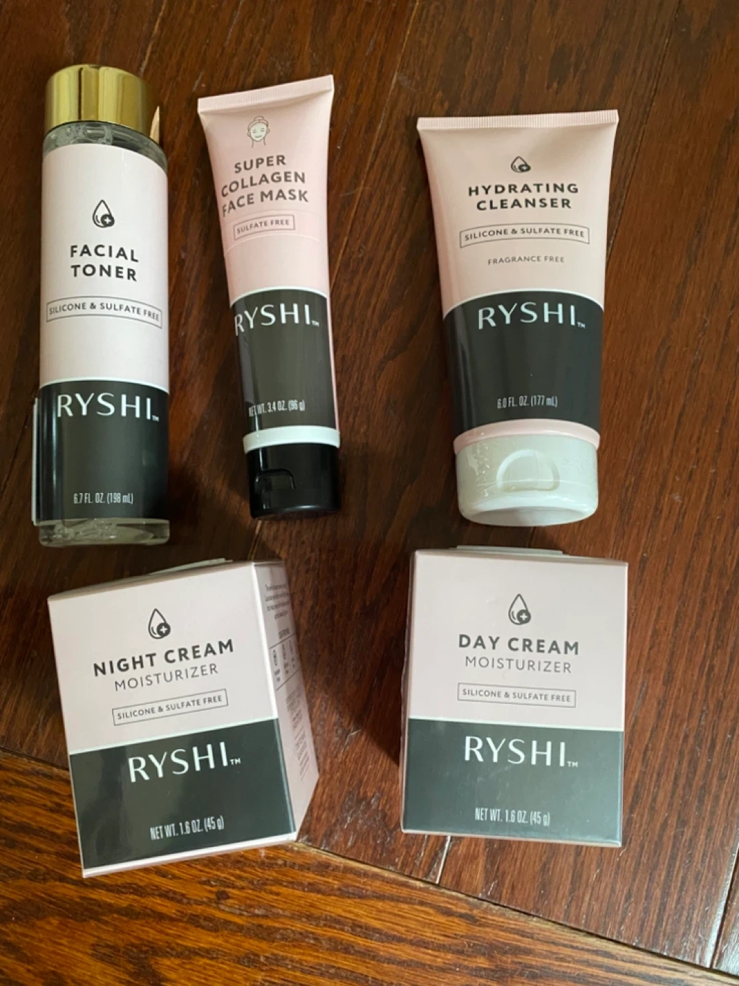 Selling a Ryshi skincare set! Includes a facial toner (6.7 fl oz/198 ml), super collagen face mask (3.4 oz/96 g), hydrating cleanser (6.0 fl oz/177 ml), day cream moisturizer (1.6 oz/45 g), and night cream moisturizer (1.6 oz/45 g). All products are silicone and sulfate free! Made in Turkey Cash only