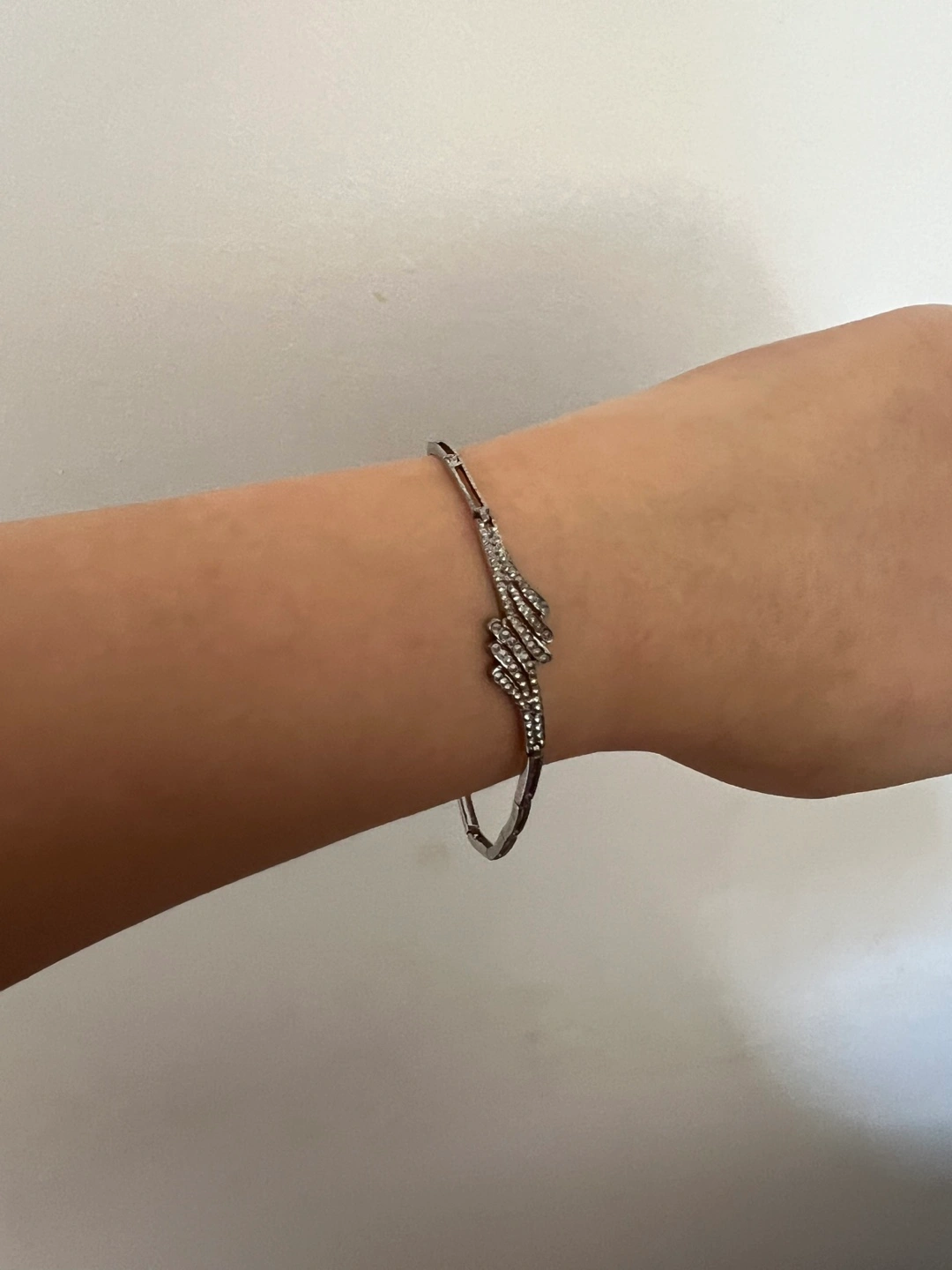 A lovely silver-tone bracelet, perfect for adding a touch of sparkle to any outfit! It features a unique design with delicate detailing. It's in great condition and ready to be worn