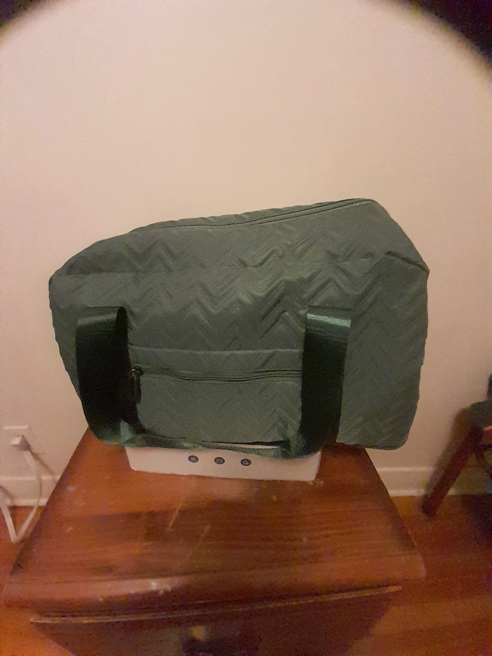 Sac fourre-tout de couleur verte, parfait pour vos déplacements ou pour le sport! Il est en bonne condition et prêt à vous accompagner dans vos aventures