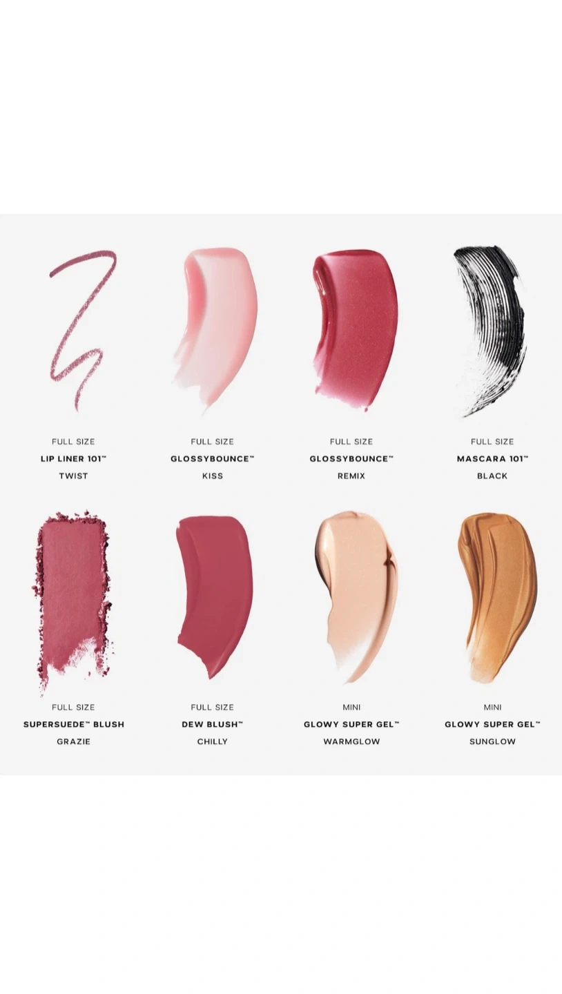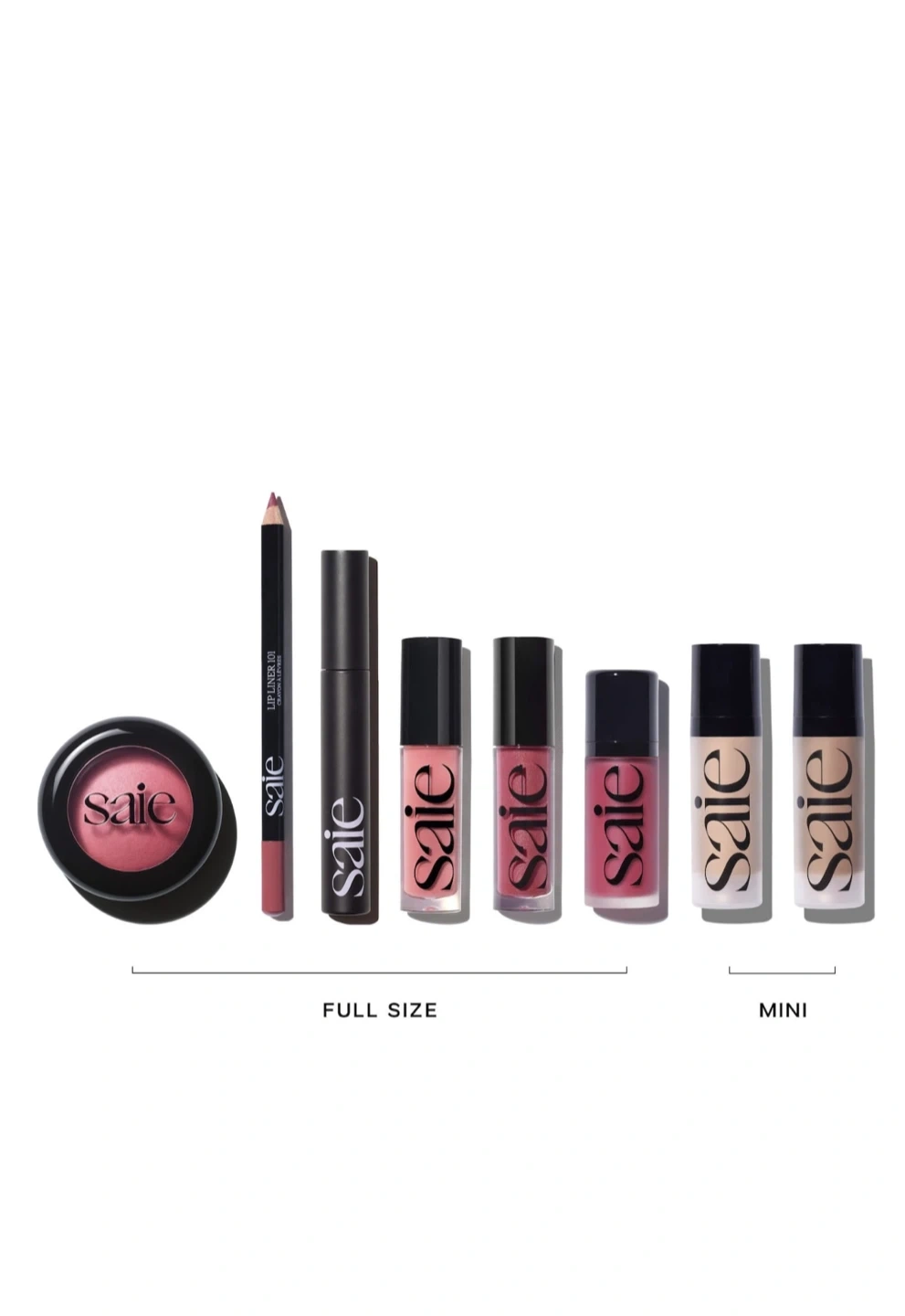 Selling a set of brand new Saie makeup items! can sell individuals too. purchased from sephora, can provide receipt if needed. Includes full-size Lip Liner 101 in Twist, Glossybounce in Kiss and Remix, Mascara 101 in Black, Supersuede Blush in Grazie, and mini Glowy Super Gel in Warmglow and Sunglow! prices start from $22 onwards