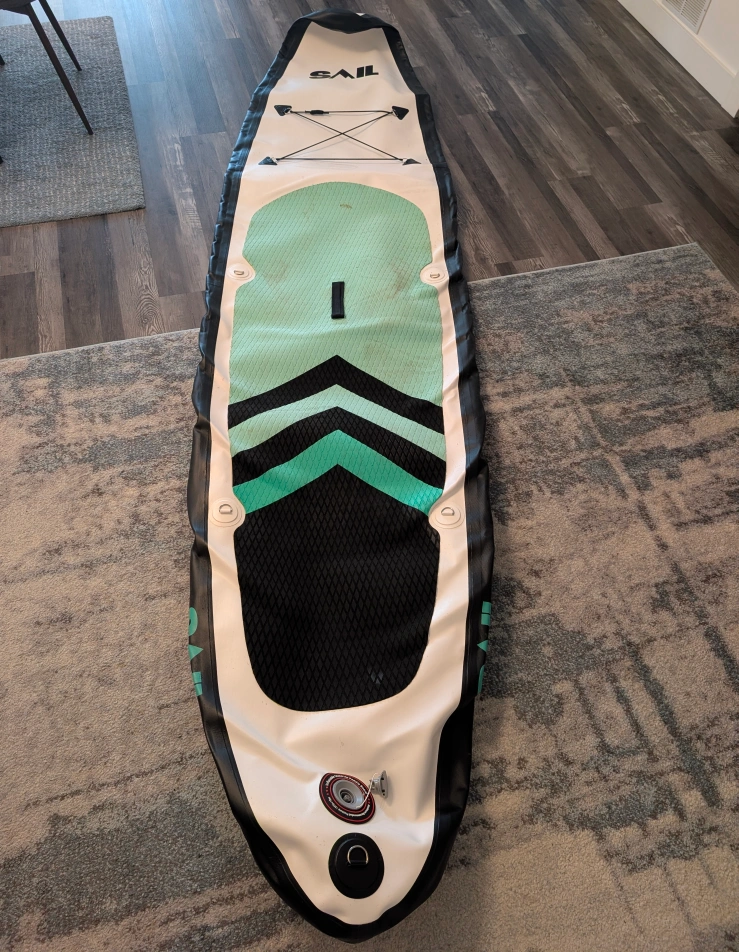 Selling a SAIL inflatable stand-up paddle board! It comes with all the accessories you need to get out on the water. This includes the pump, paddle, fin, and a life jacket. Also includes the carrying bag for easy transport and storage