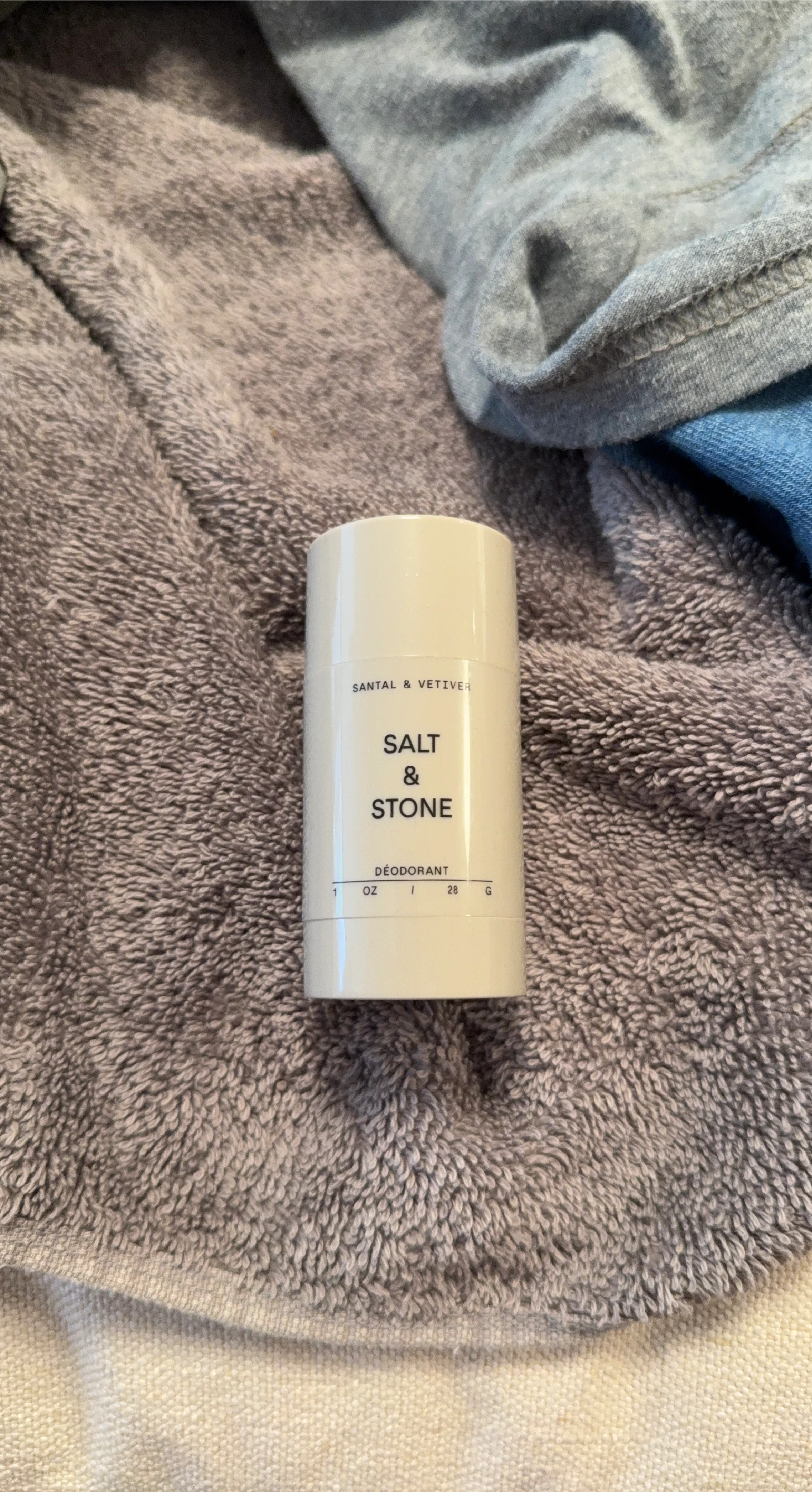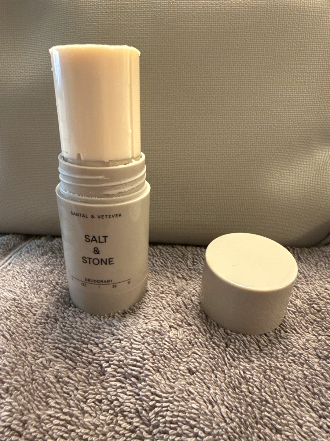 Selling a Salt & Stone deodorant in the Santal & Vetiver scent! It's a 1 oz deodorant stick. This deodorant is lightweight and portable, making it perfect for on-the-go use It’s coconut oil based and protects for up to 48hours. I didn’t like the texture and I’ve cut off the top part used with knife.