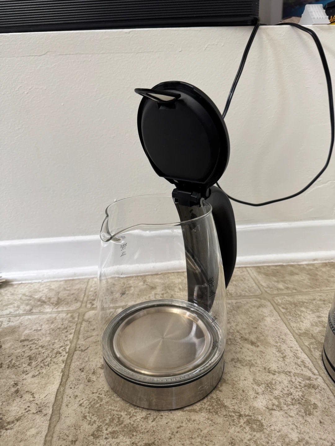 Selling a Salton glass electric kettle. It can hold up to 1.7L of water. It's in great condition and ready for a new home!