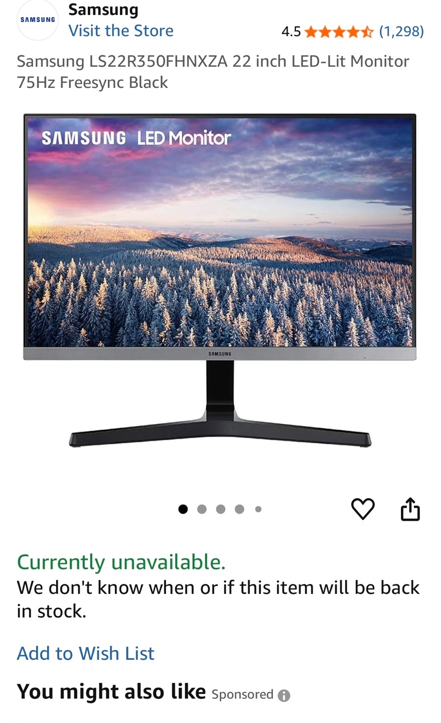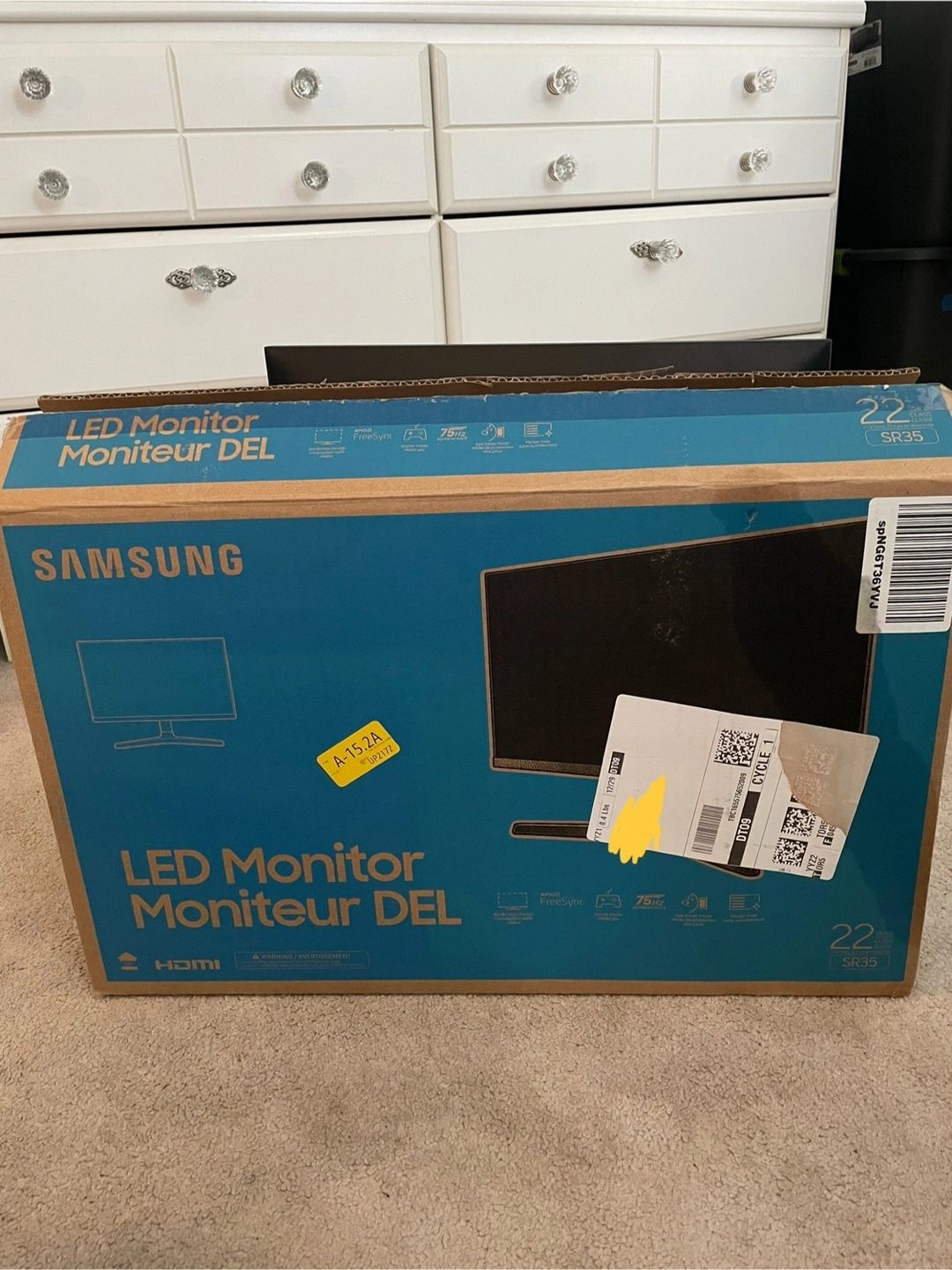 Selling a Samsung 22-inch LED monitor! It's in great shape and comes with the original box. This monitor is the LS22R350FHNXZA model and features a 75Hz refresh rate and FreeSync technology. Perfect for everyday use or gaming! Barely used! I purchased from Samsung for about $150. I'll throw in some cable organizers and HDMI cable for free.