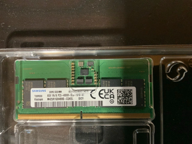 Selling a new Samsung 8GB DDR5 SODIMM RAM. Only used it for a week. It’s pulled from a UGREEN nas drive. Key Features: * Brand: Samsung * Capacity: 8GB * Type: DDR5 SODIMM * Speed: PC5-4800B * Model: M425R1GB4BB0-CQKOL $50