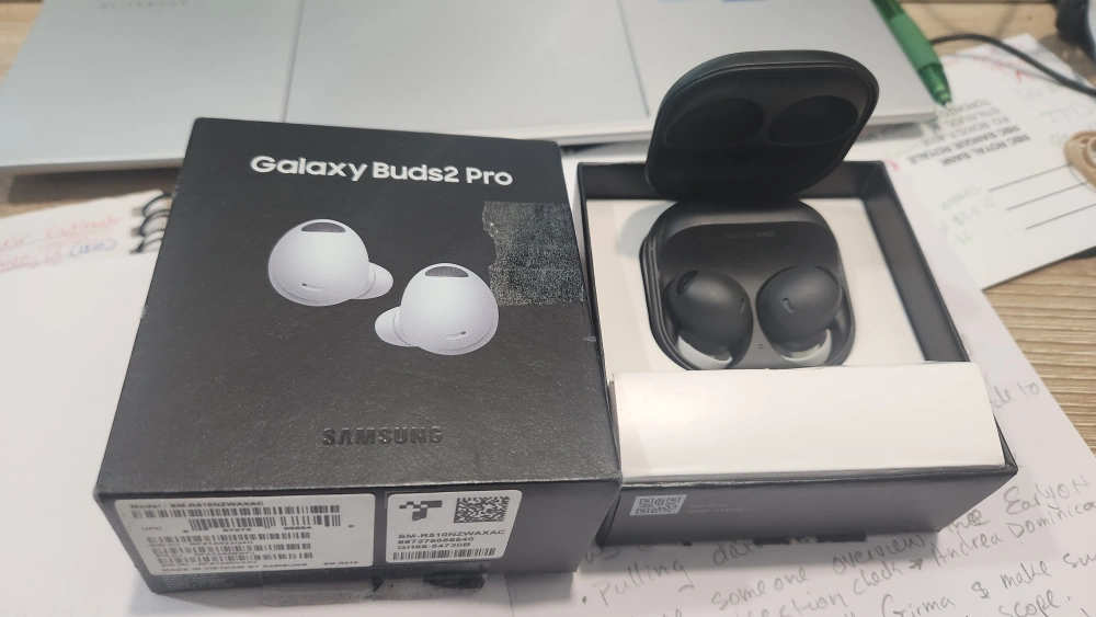 Selling a pair of Samsung Galaxy Buds2 Pro in excellent condition! These come with the original box and all included components. They offer great sound quality and are super comfortable for everyday use. If you're looking for a premium audio experience, these are a fantastic option!