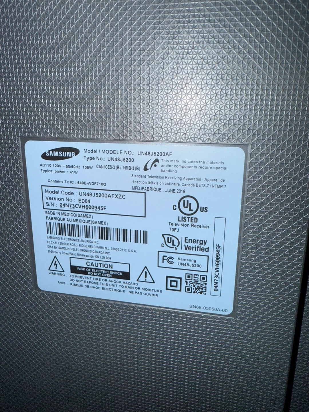 Samsung 48" Full HD 1080p LED Smart TV (UN48J5200AF) + Amazon Fire Stick. It's in great condition and ready for a new home. Feel free to reach out if you're interested!
