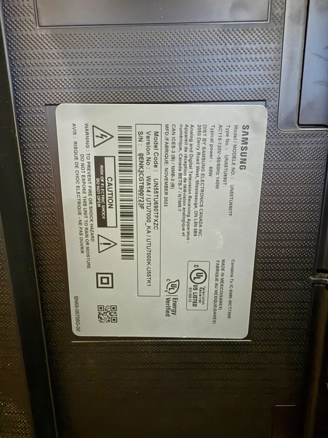 Selling a Samsung 55" 4K UHD Smart TV, model number UN55TU850TF. Only 2 years old and comes with the remote control and power cord. Great for streaming your favourite shows and movies!