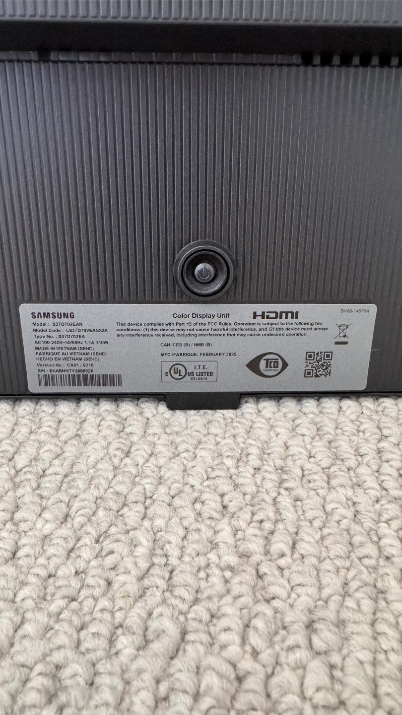 Selling a Samsung ViewFinity S7 monitor. It's in great condition and ready for a new home! Model Code: S27D700SAN Model Name: LS27D702EA/ZA It comes with a Color Display Unit and HDMI port. Manufactured in Vietnam (SEHC). Expires February 2025