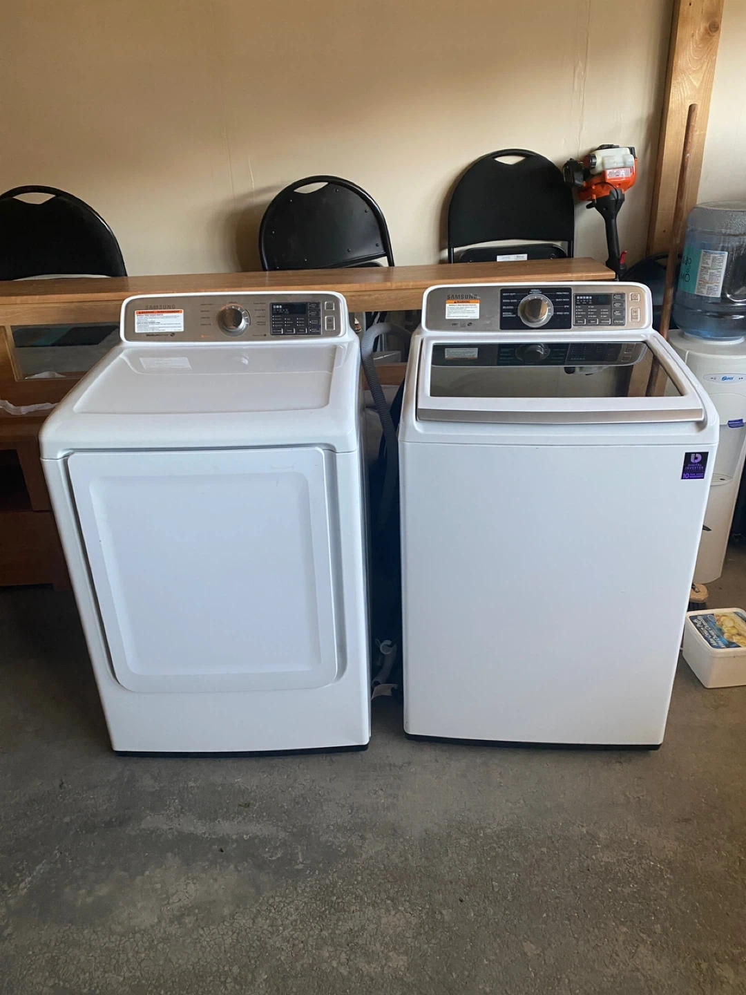 Selling a Samsung washer and dryer set. Both are in great working condition and ready for a new home. They are white in colour and offer a variety of settings to suit your laundry needs. Perfect for any household looking for a reliable and efficient laundry solution