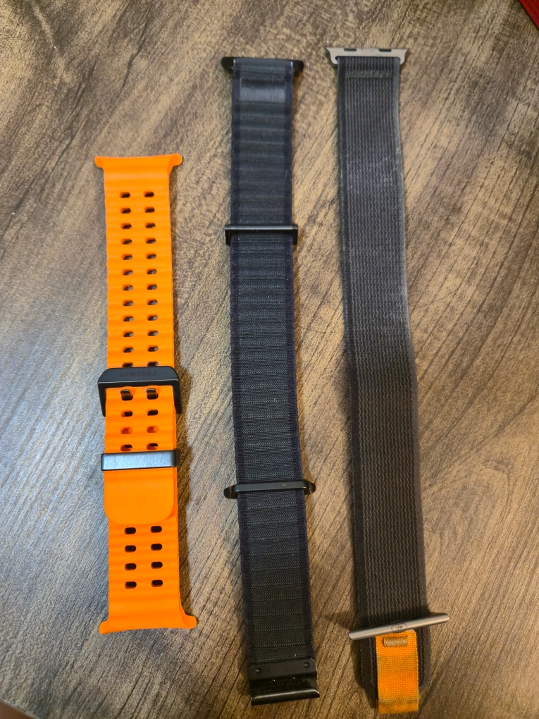 Selling a variety of Samsung watch straps. There's an orange strap and a couple of black ones available. They're in great shape and ready for a new home! $20 - Orange $5 - Black Strap $3 - Apple Black Strap