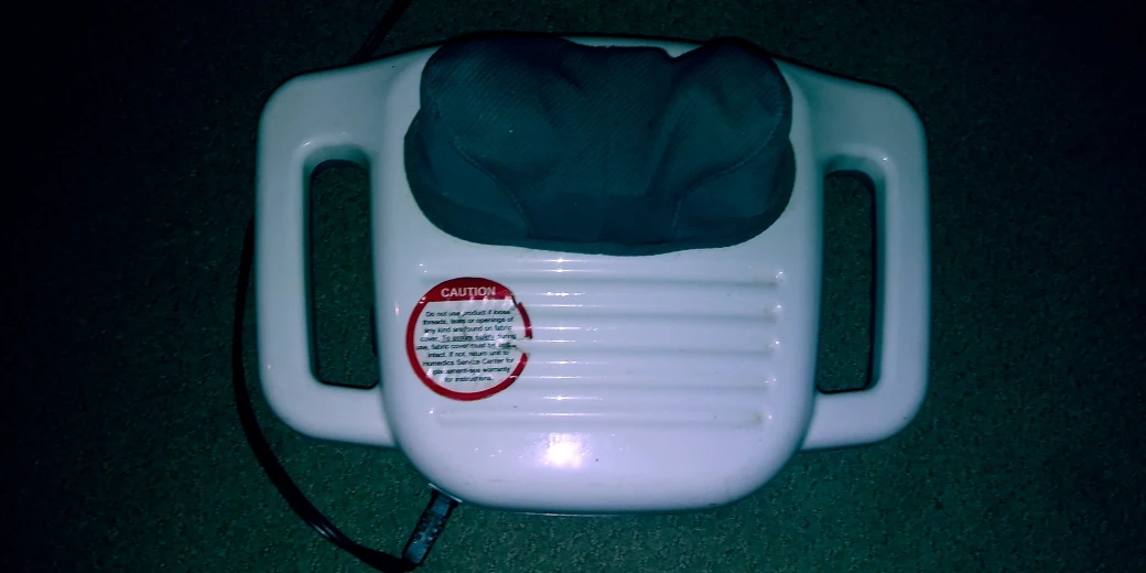 A portable massager. Featuring a white design with handles. Great for relaxation after a long day.