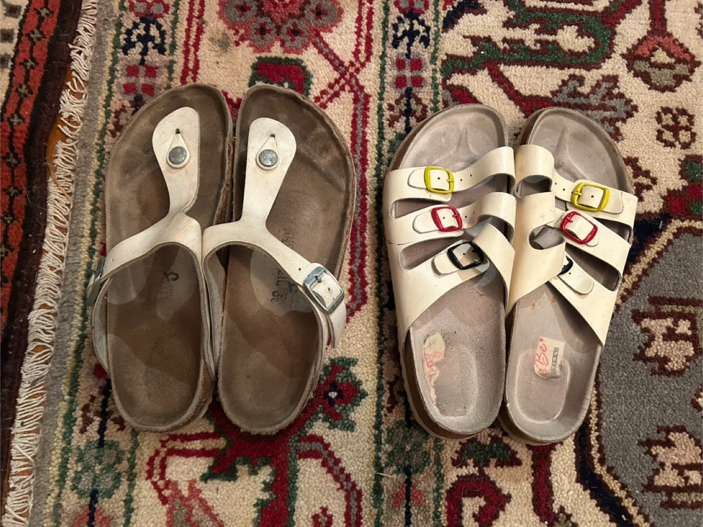 Selling a pair of sandals. The ones on the left are Birkenstock. They are size 39. They have some wear but still have lots of life left.