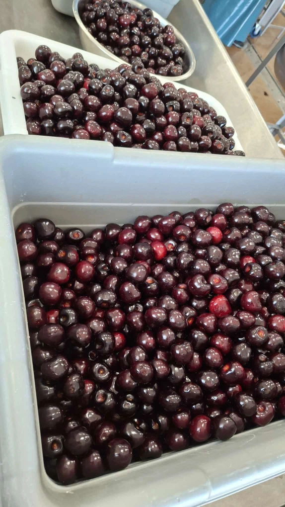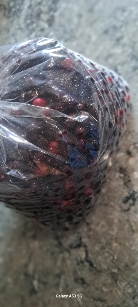 Freshly picked saskatoons available! They're a beautiful dark colour and perfect for snacking or baking. Grab them while they're in season
