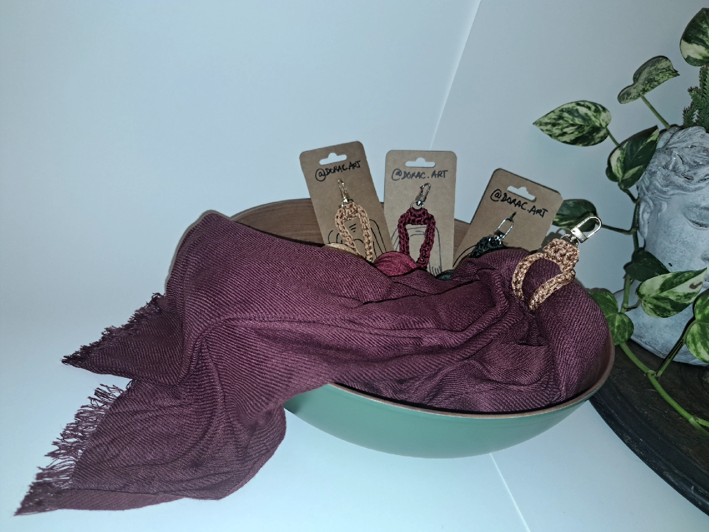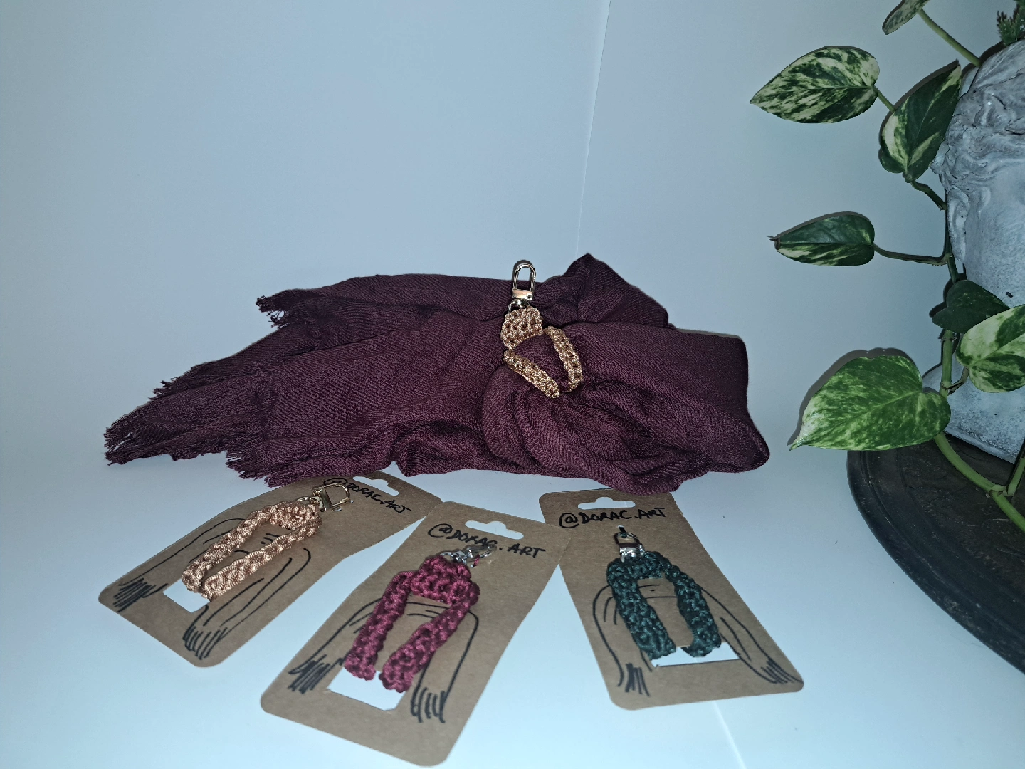 Practic holder for scarfs, handkerchief or small help with small shopping bags to attach to your purse. Helps you dont forget your scarf somewhere because you have one way to attach to you. Multifunction. Your can use it too to attach a phone or a small purse to your wrist. Key chain also. Handmade.