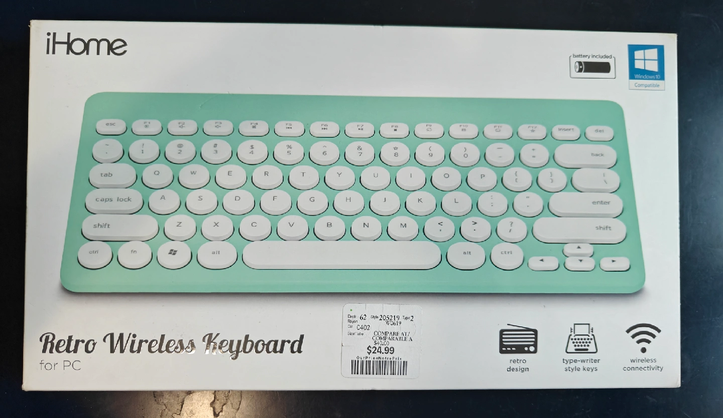 Selling a mint green iHome Retro Wireless Keyboard for PC along with 3 USB Hard Drives, wired Headphones and a Scientific Calculator. It comes in its original box, and it's compatible with Windows 10. Originally priced at $24.99! Mint Wireless Keyboard: $10 Purple Flash Drive 256 GB : $15 Black Cat and Puppy ( both are 128 GB): $ 24 Wired Headphones: $10 Scientific Calculator: $3.00