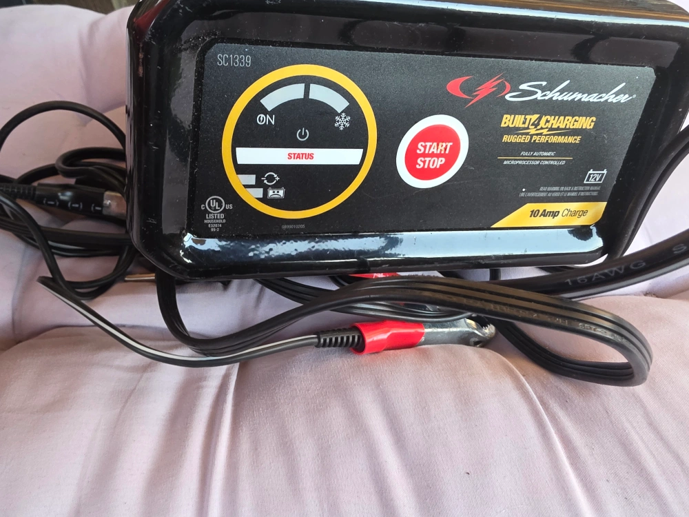 Selling a Schumacher SC1339 battery charger! This is a rugged performance charger that's fully automatic and microprocessor controlled. It's designed for 12V batteries and provides a 10 Amp charge. Great for keeping your car or motorcycle battery in top shape!