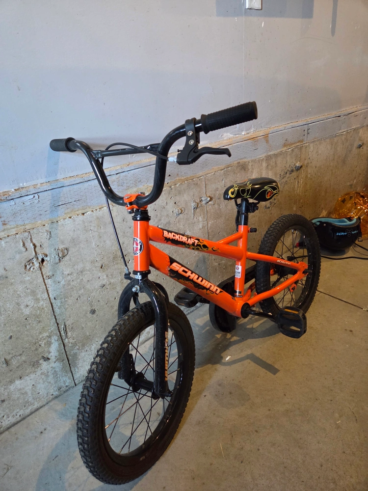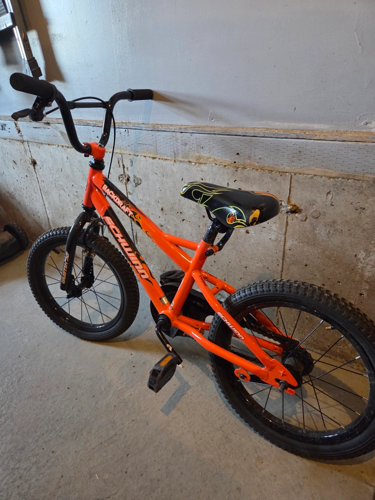 Selling a Schwinn Backdraft 16-inch bike in orange! It's a great bike for kids learning to ride. The bike is in good condition and ready for a new home. Perfect for getting around the neighbourhood or hitting the park trails!
