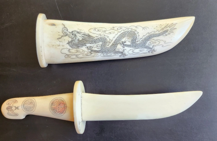 Handmade! Bone material. Intricate engravings of dragons and phoenixes. Unique handles. Collectible items. Excellent detail.