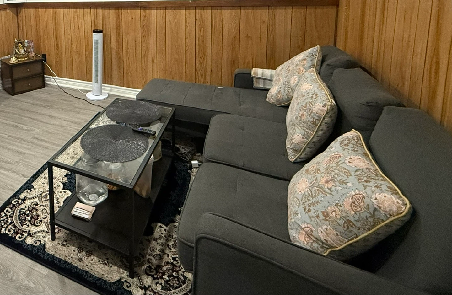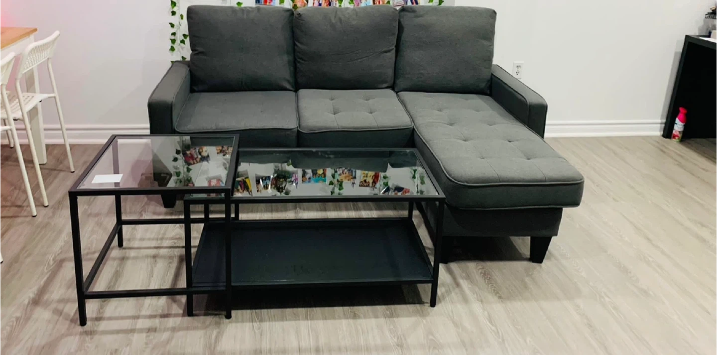 LIVING ROOM FURNITURE SET FOR SALE! Gently used living room furniture set, rarely used and in excellent condition (except for slight damage to the couch). Set includes: Coffee table TV table Dresser Couch Asking $1100 for the entire set. Negotiable price! Don't miss out on this amazing deal! Contact us to learn more and make an offer!"