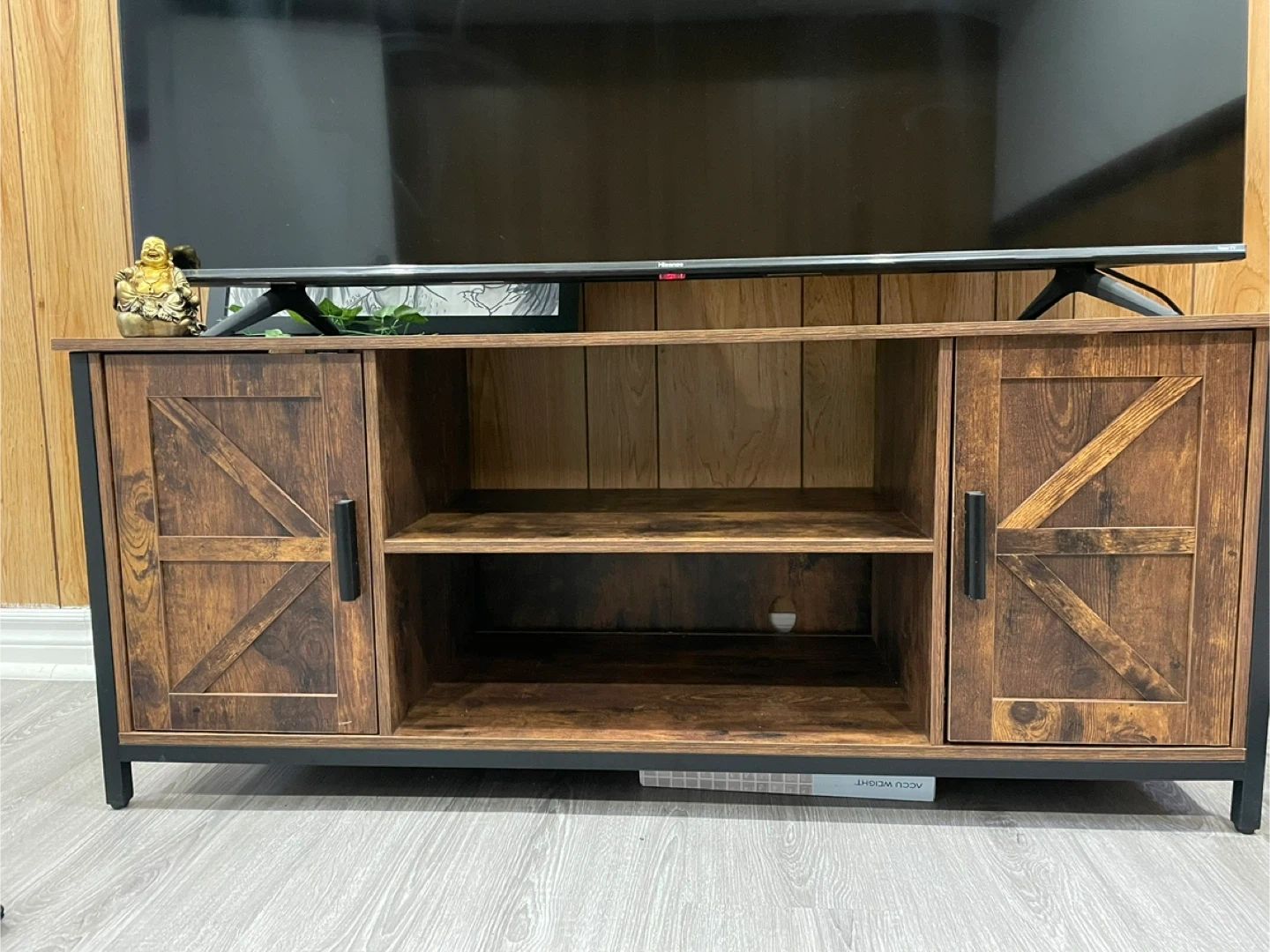 TV Stand, Comfy three-seater couch.
