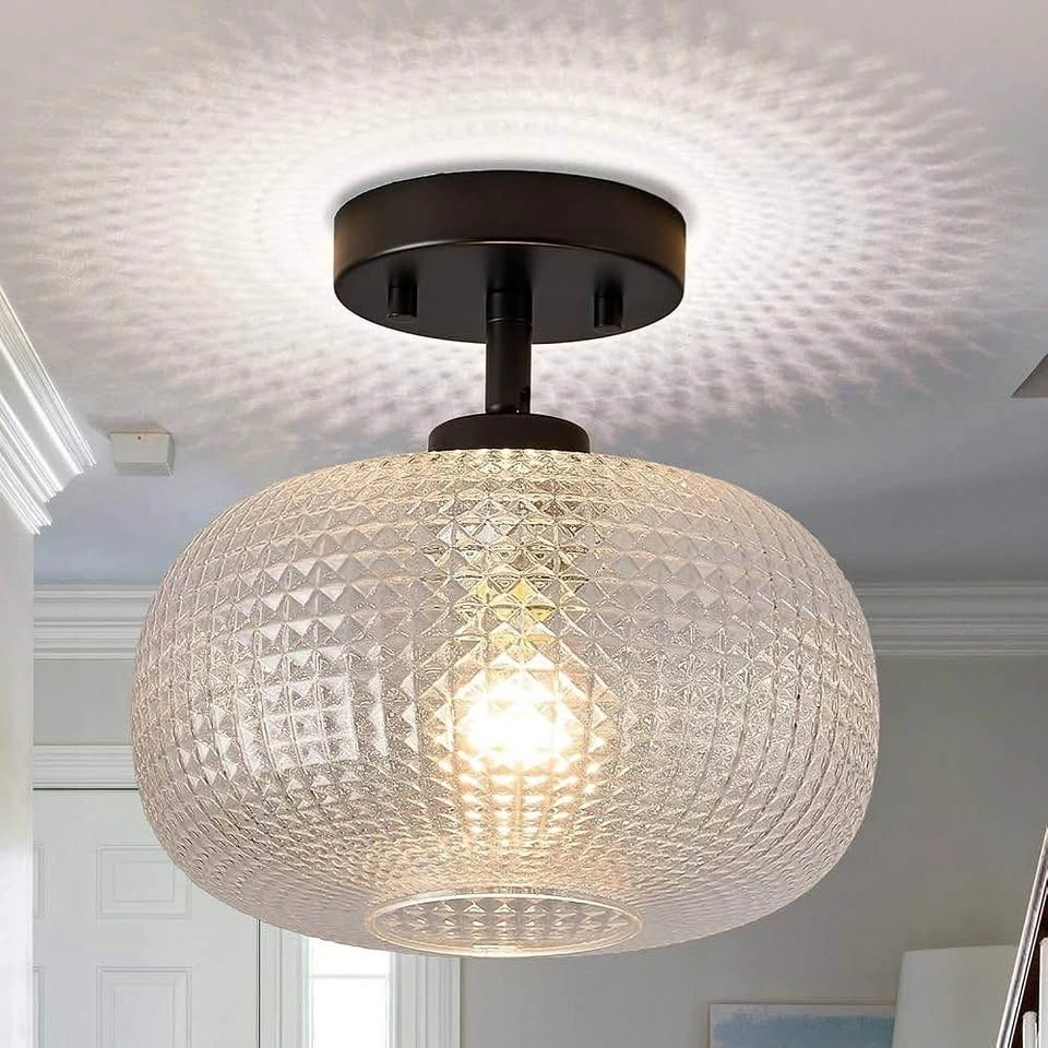 BNIB Semi Flush Mount Ceiling Light Fixture with Seeded Glass, Black Mid-Century Modern Globe #173 Pick up near 10800 Bayview Avenue, Richmond Hill If listing is up, it’s available