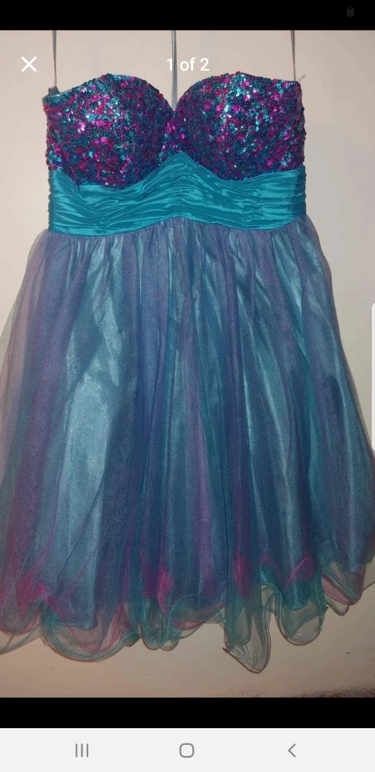 This is a strapless party dress with a sequin bodice and tulle skirt. It's in great condition and ready for a night out! Only used once for prom. Pu in St. Catharines.