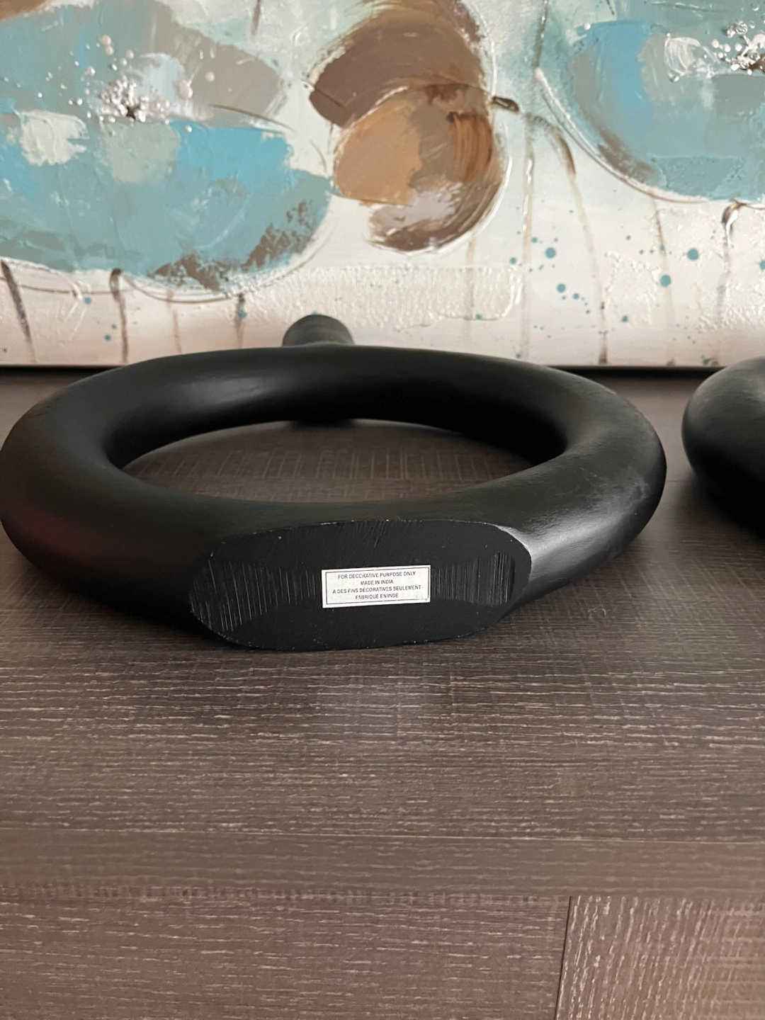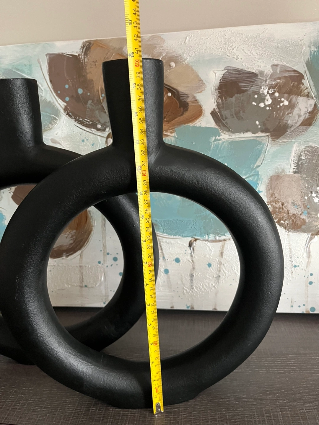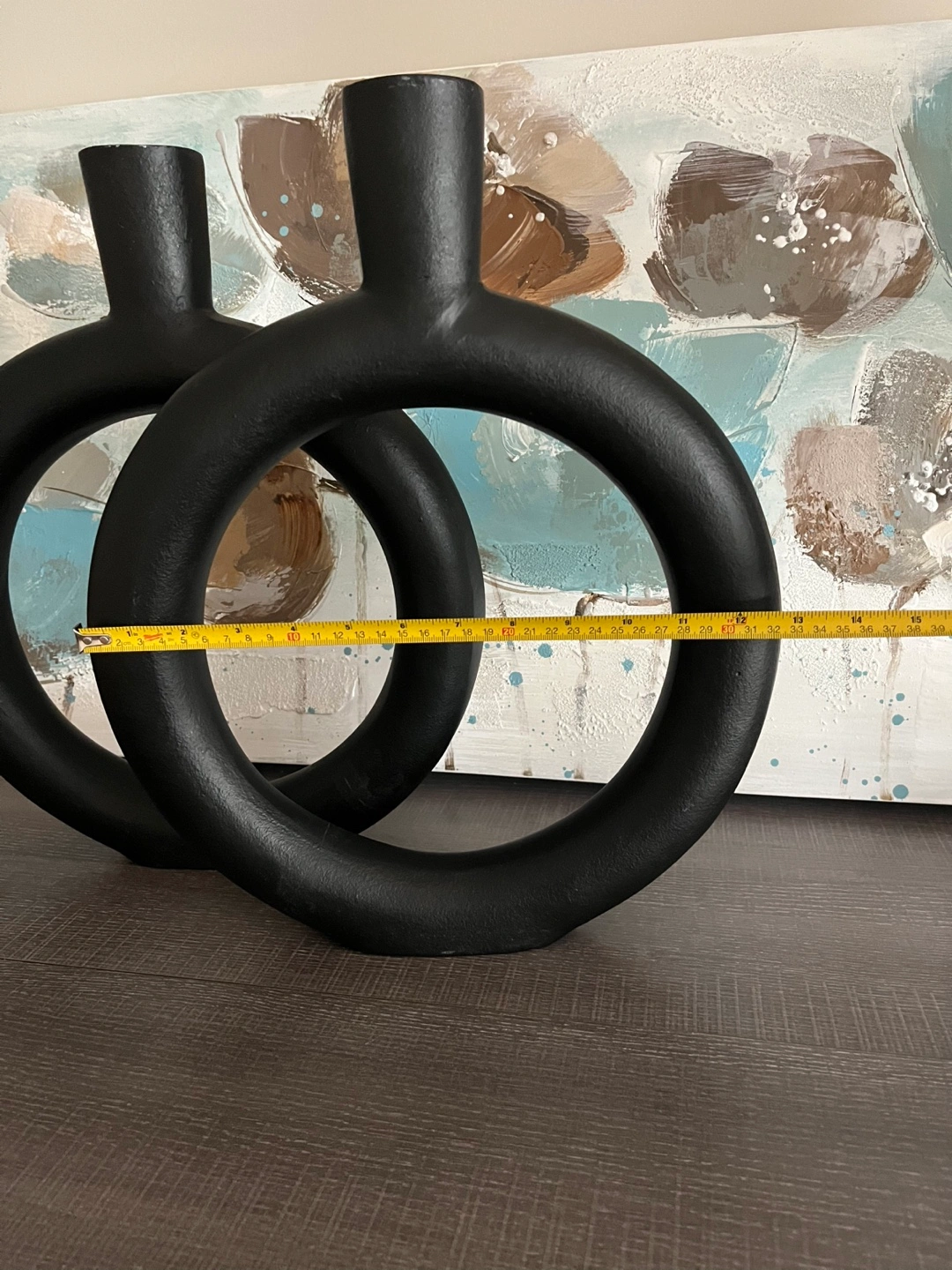 Pick up in Utopia. Here's a set of two decorative ceramic vases in a matte black finish! They would look great on a shelf or as a centrepiece.
