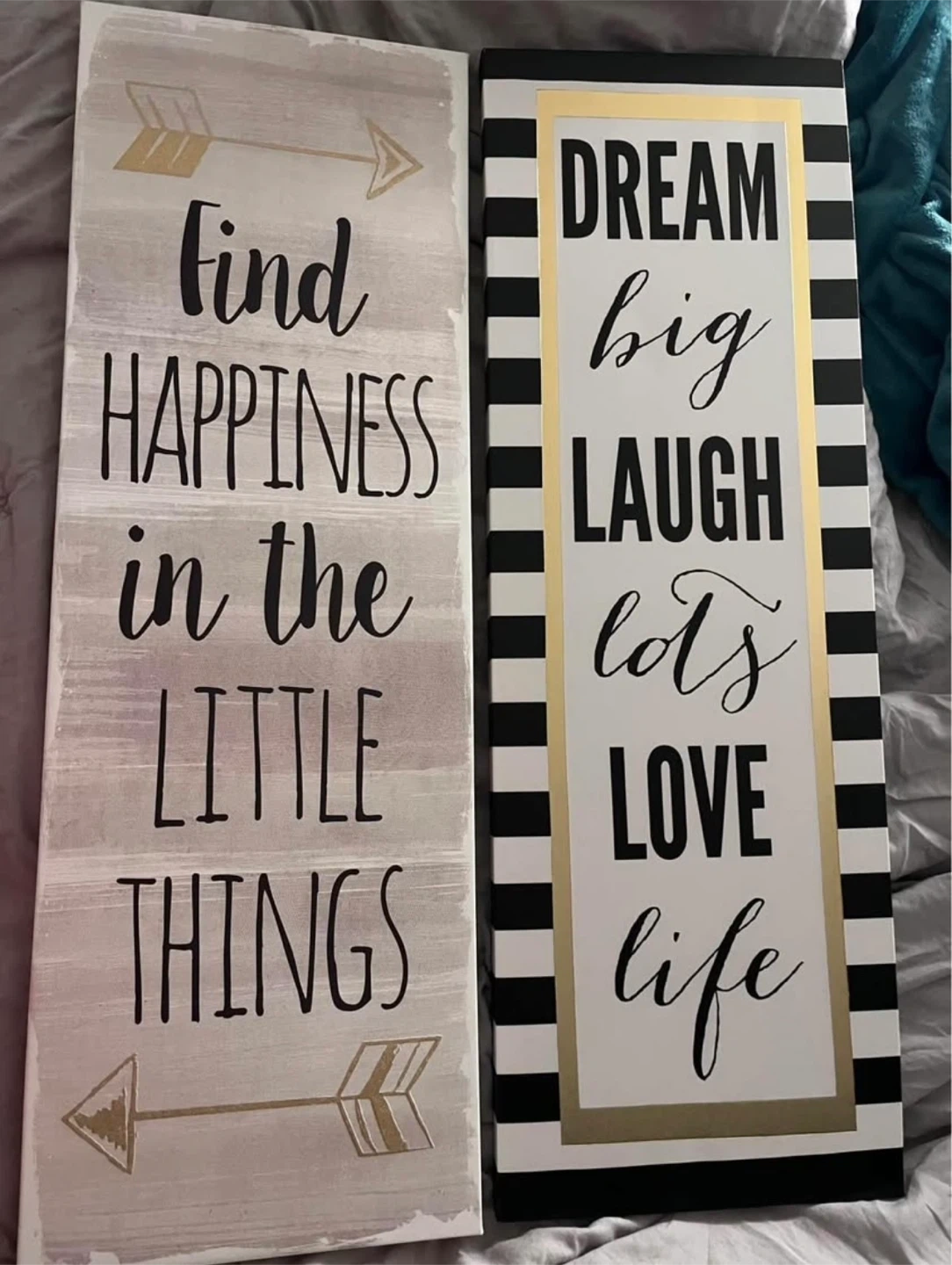 Selling a set of two decorative wall art canvases. They're in great shape and would add a nice touch to any room.