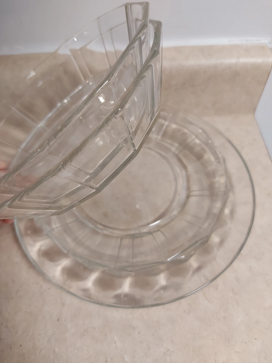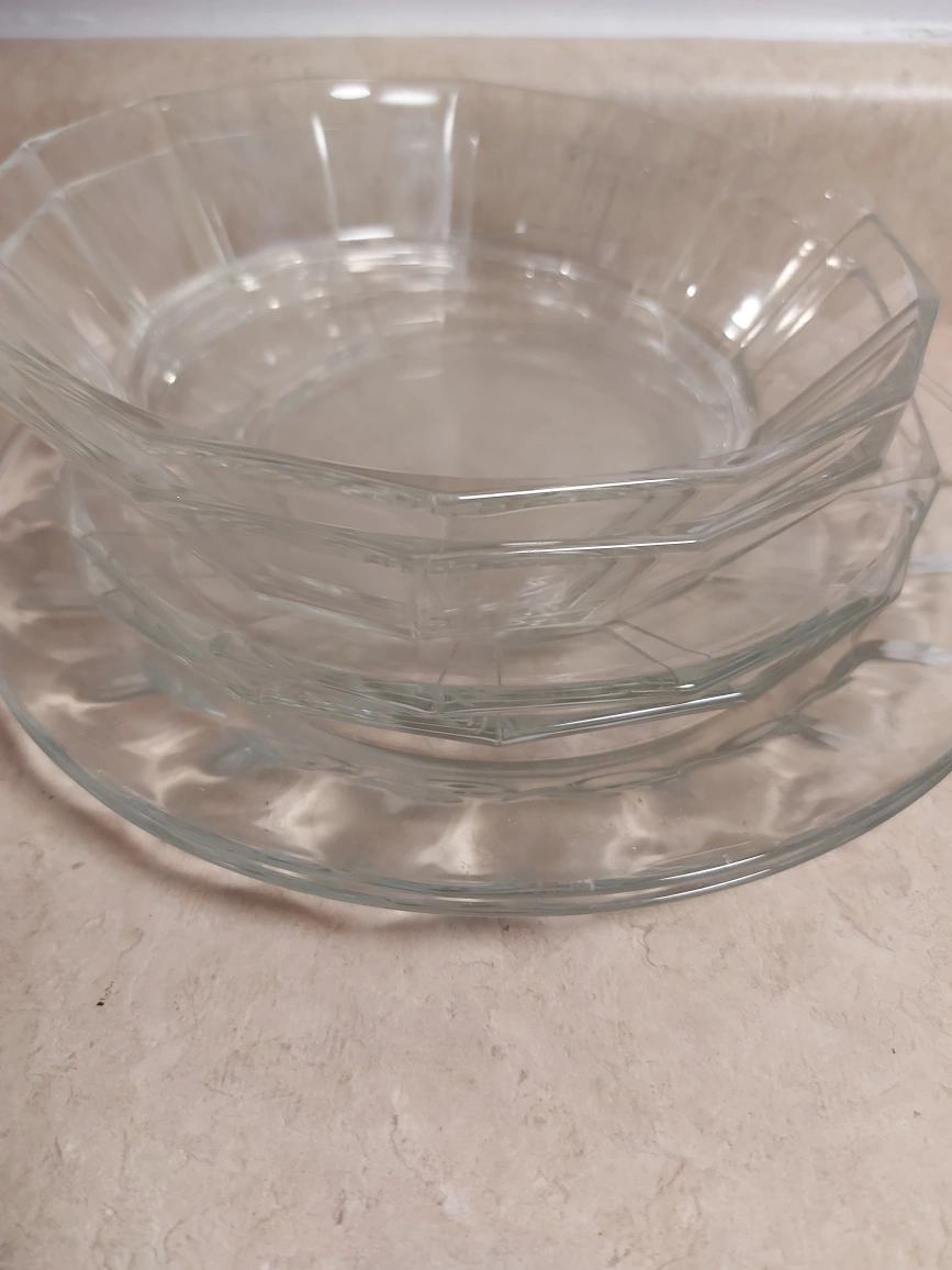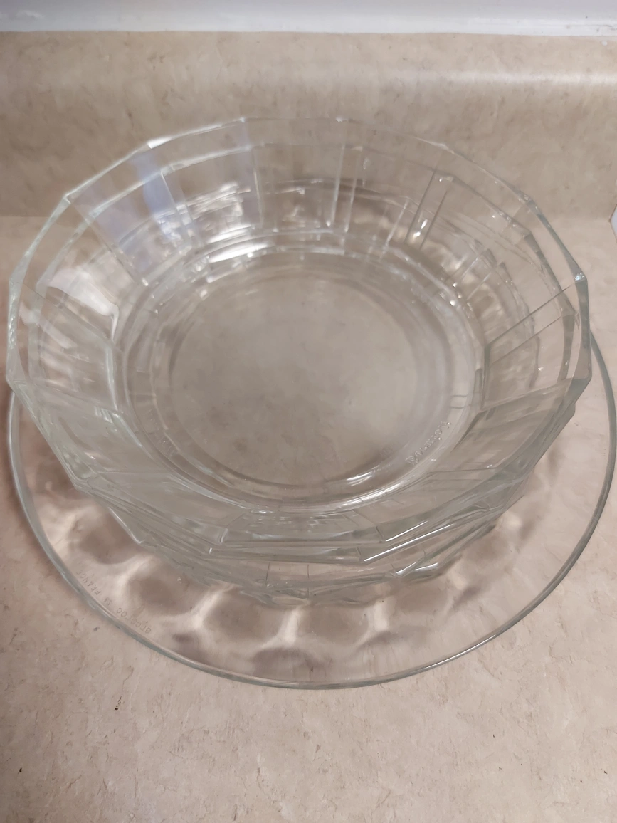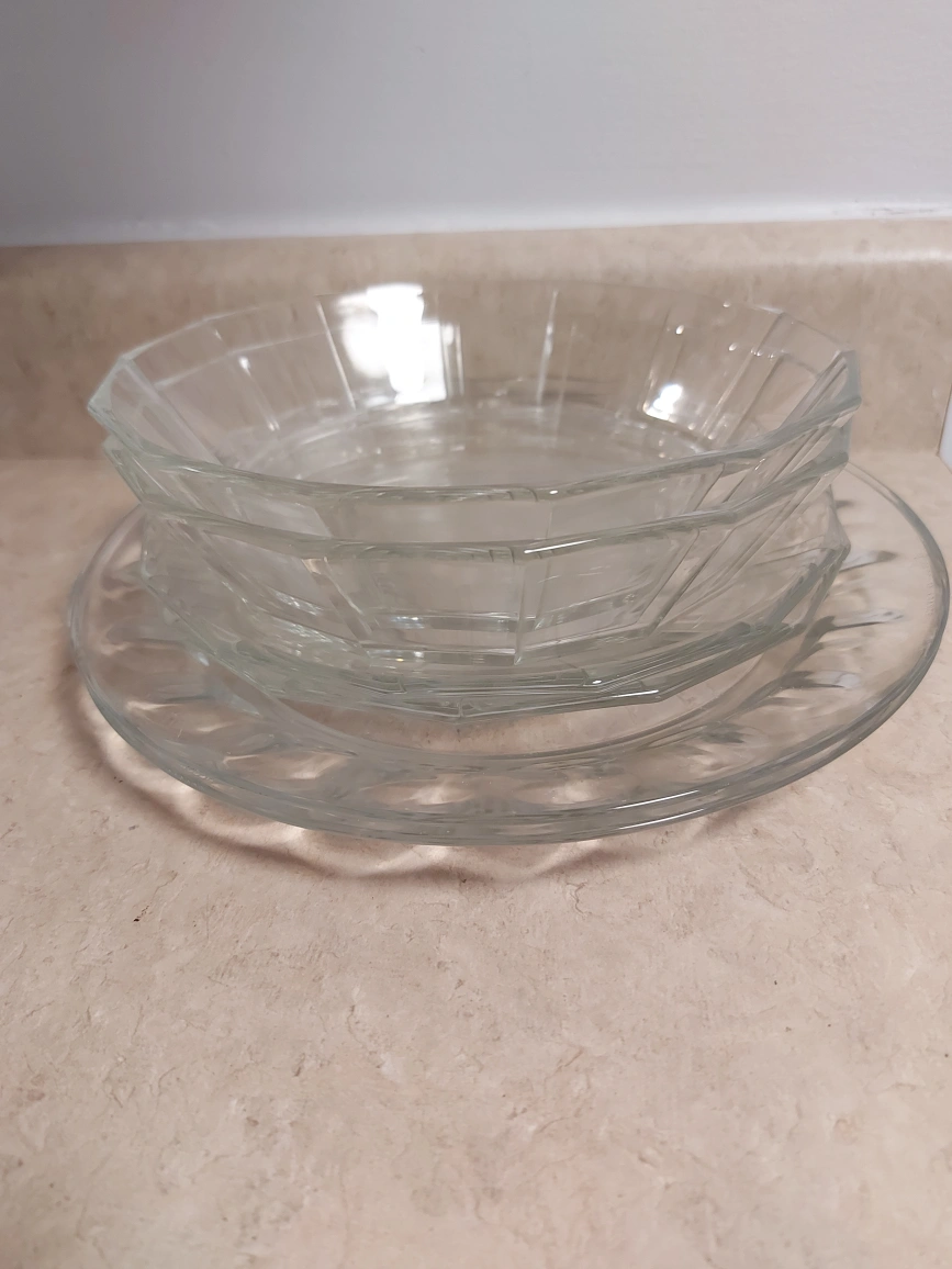 Selling a set of four clear glass bowls. They're in great shape and ready for a new home! Perfect for serving up snacks, desserts, or salads