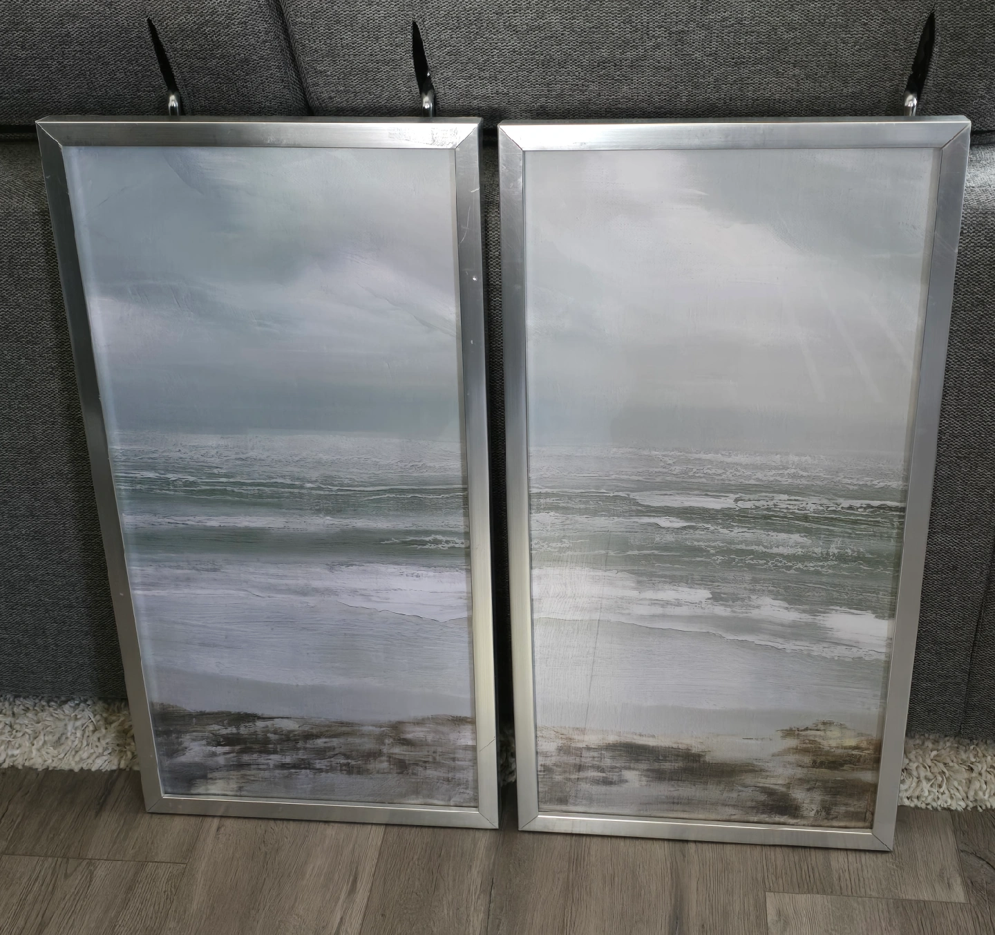 Set of 2 wall prints in metal frames. Each frame is 28.5 high, 14.5 wide and 1.5 thick. Sold as a set for $15. Smoke free home. Pick up in Woodlawn.