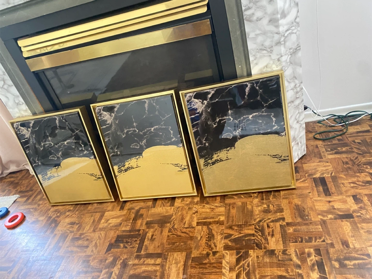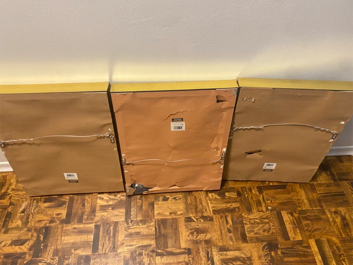 Selling a set of three Linden Ave wall coverings art pieces. Each piece measures approximately 16 inches by 22 inches. Pick up in Newmarket Cash only
