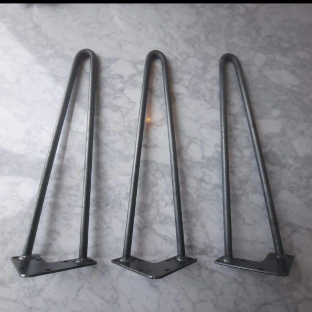 Selling a set of three medium sized metal hairpin table legs. They are in perfect condition (never used after I bought them) and ready for your next DIY table project! Perfect for adding an industrial or modern touch to your furniture