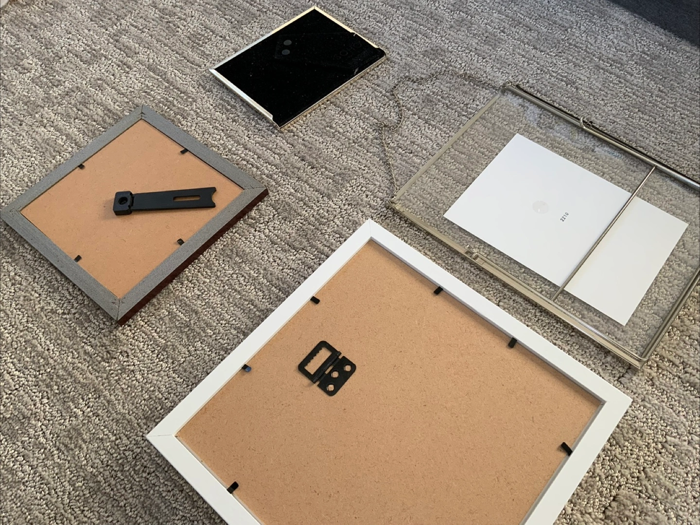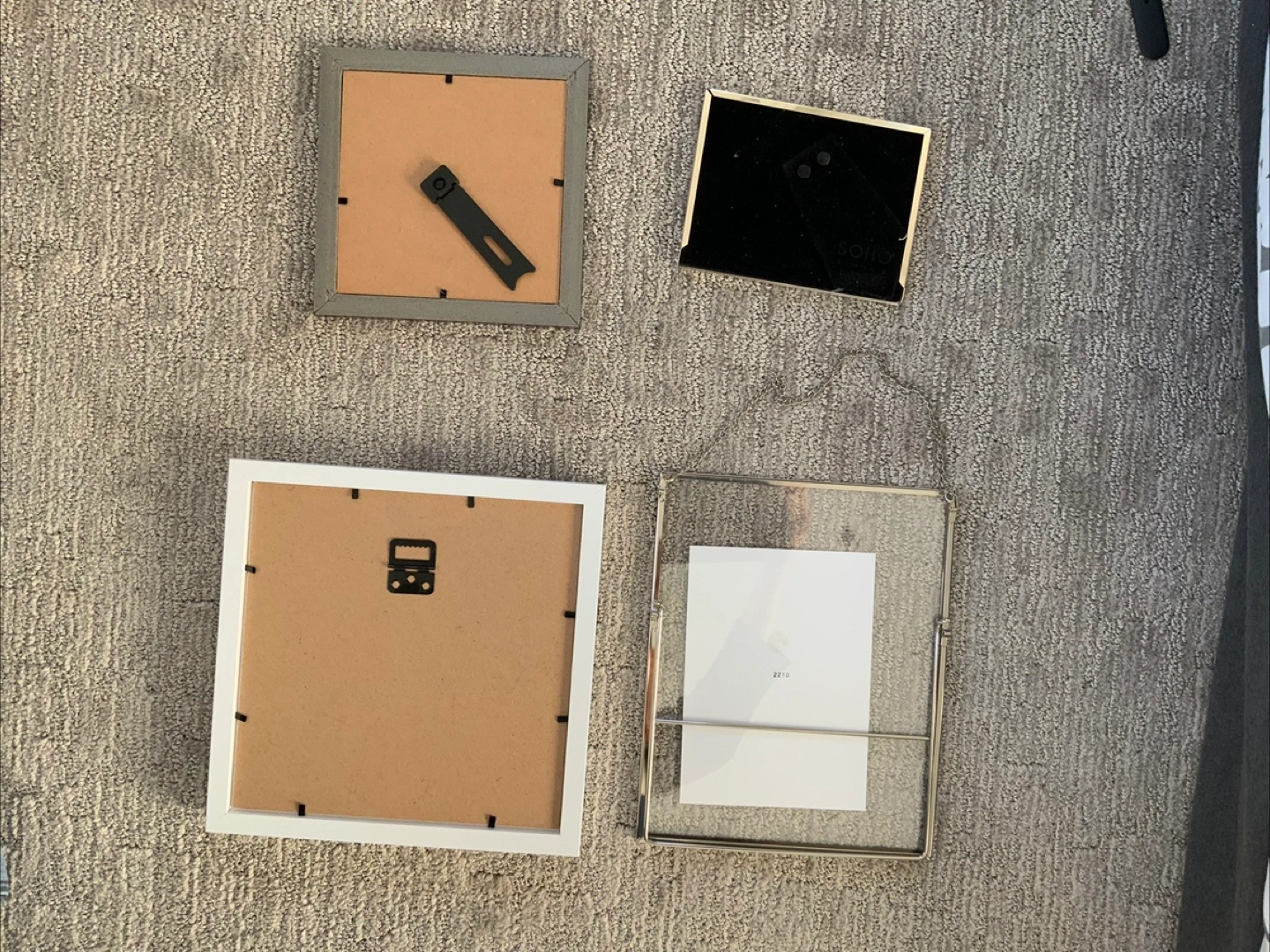 White square 25*25 cm Big glass frame 20.5*25.5 cm Small glass frame 12*15 cm Brown square 18*18 cm Ancaster Hamilton New $10 for all