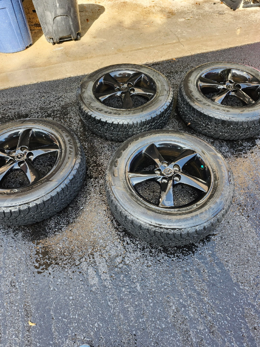 Selling a set of 4 Goodyear Nordic winter tires. The size is 225/65R17. They are in used condition and ready for the winter season. 60-70% left. Came off 2023 Mazda Cx5. On painted Mazda rims, with some marks.