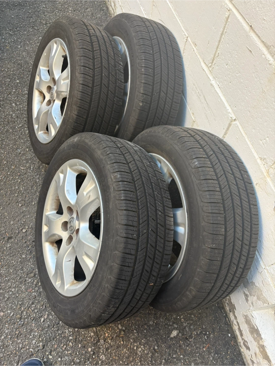 The Aluminum Rims have older all season Michelin tires (size 205/55R16) and selling as is for $450.00. Great to have as spare Rims or put your winter tires on them.