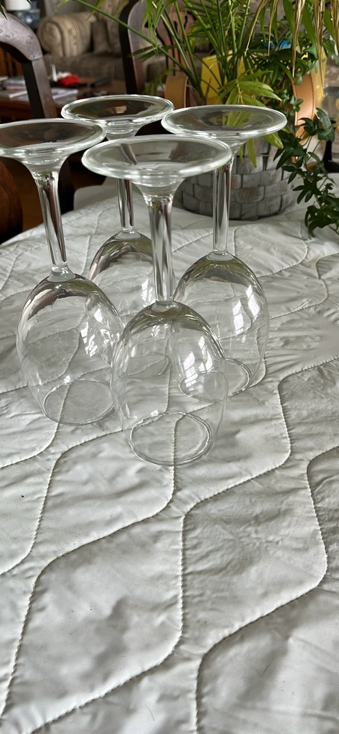 Selling a set of 4 Clear Wine Glasses. They're in great shape and ready for your next dinner party or cozy night in! Like New, No Chips or Cracks Pet and Smoke Free Environment