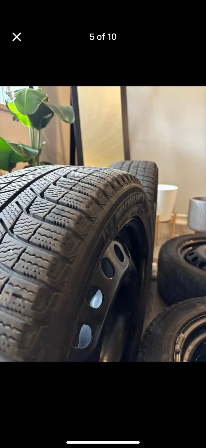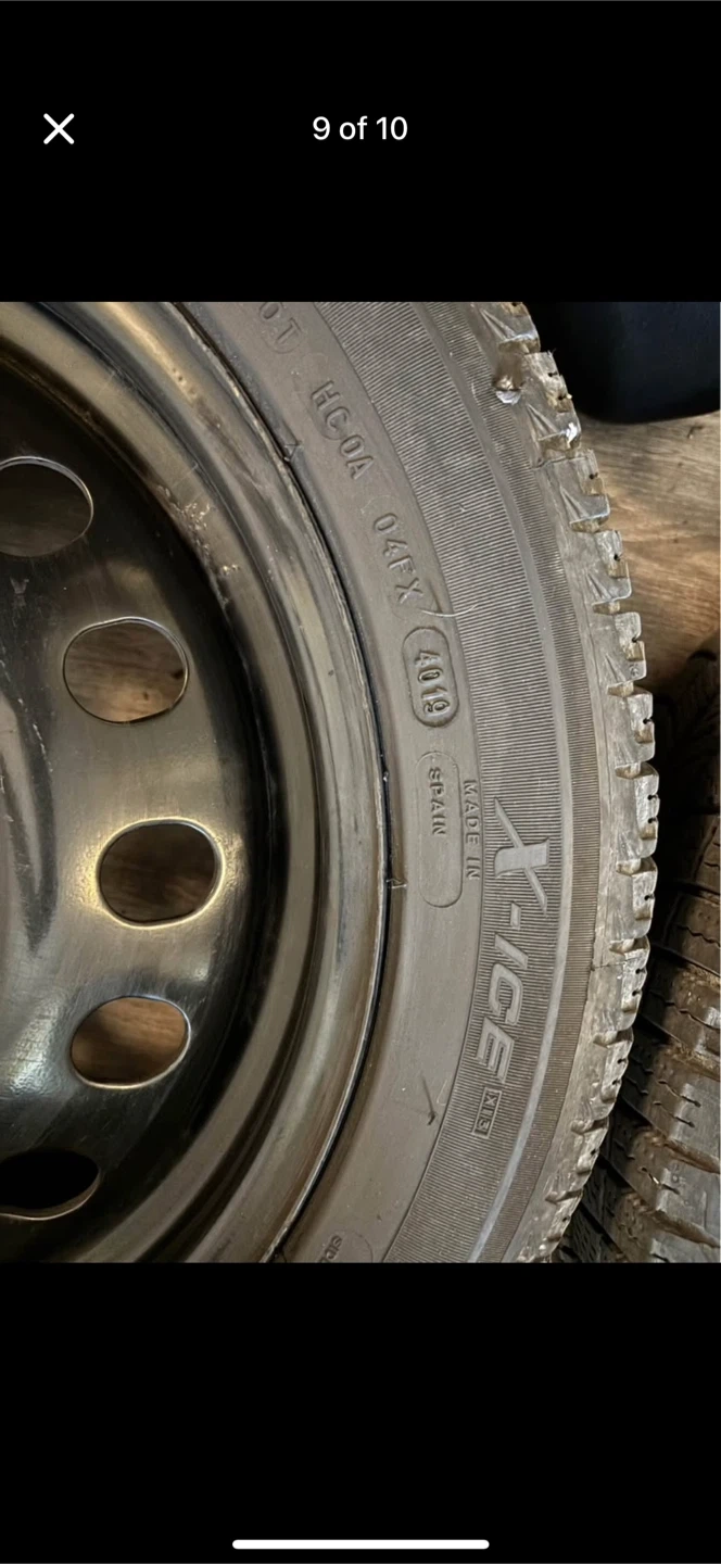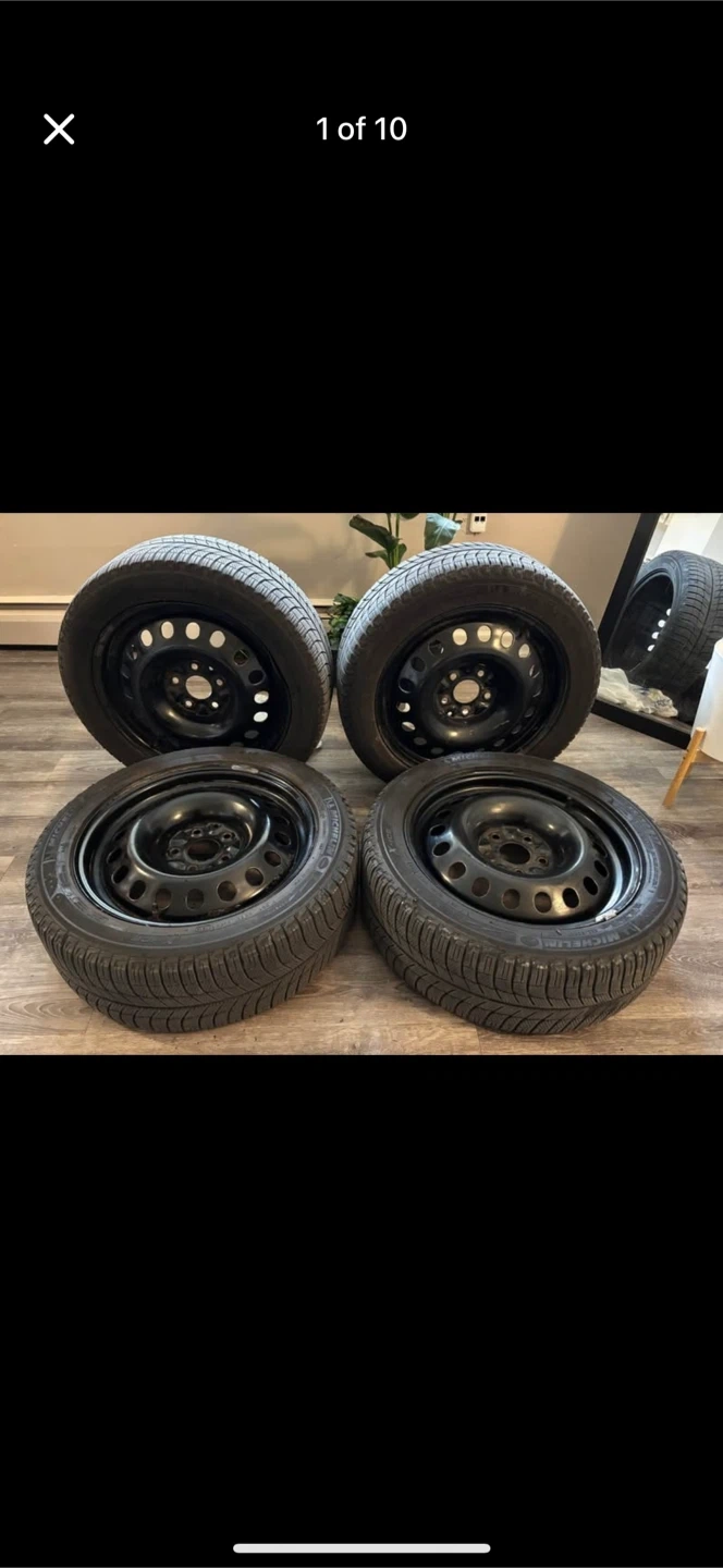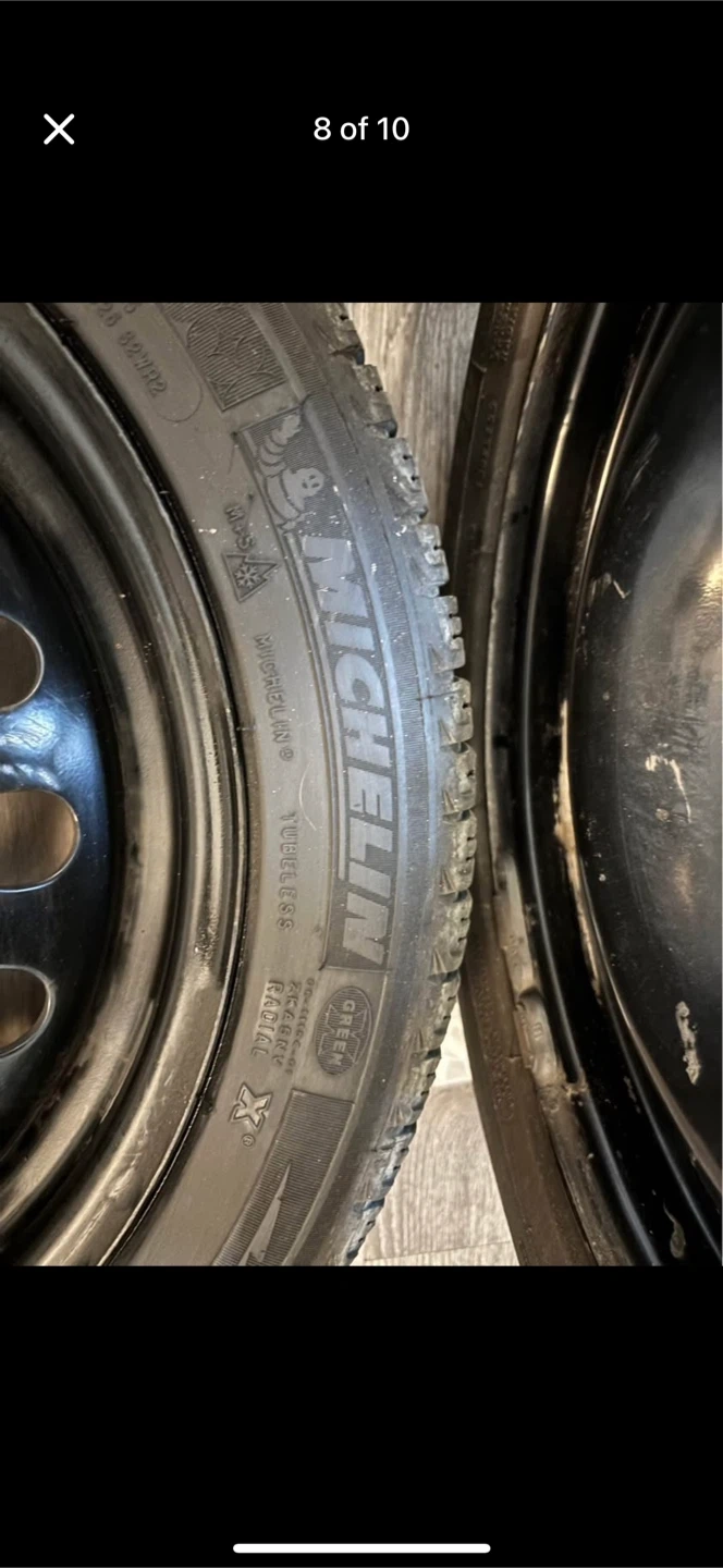 Set of four Michelin X-Ice winter tires mounted on steel rims. 90% Good tread depth. Size: 225/50R17 98H 4019 Bolt pattern 5x114.3