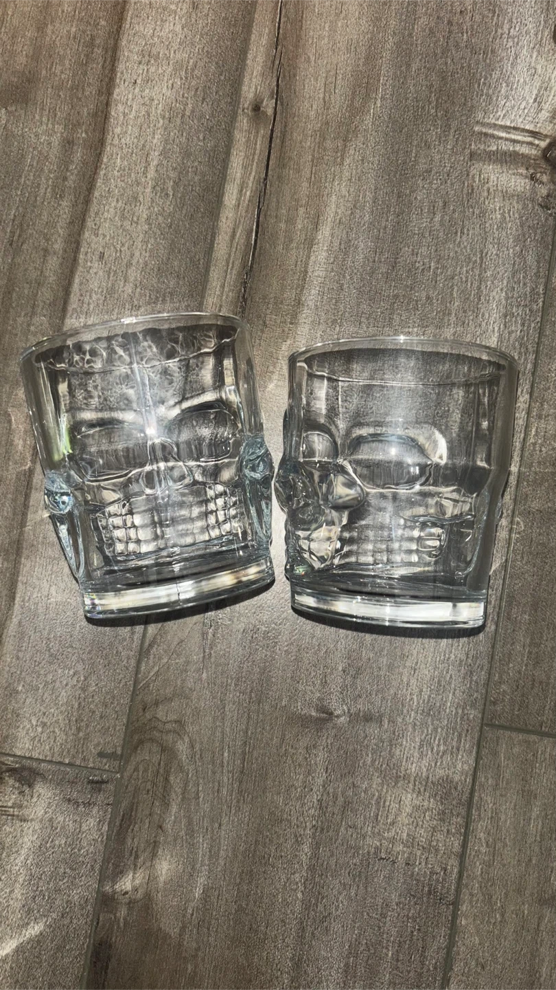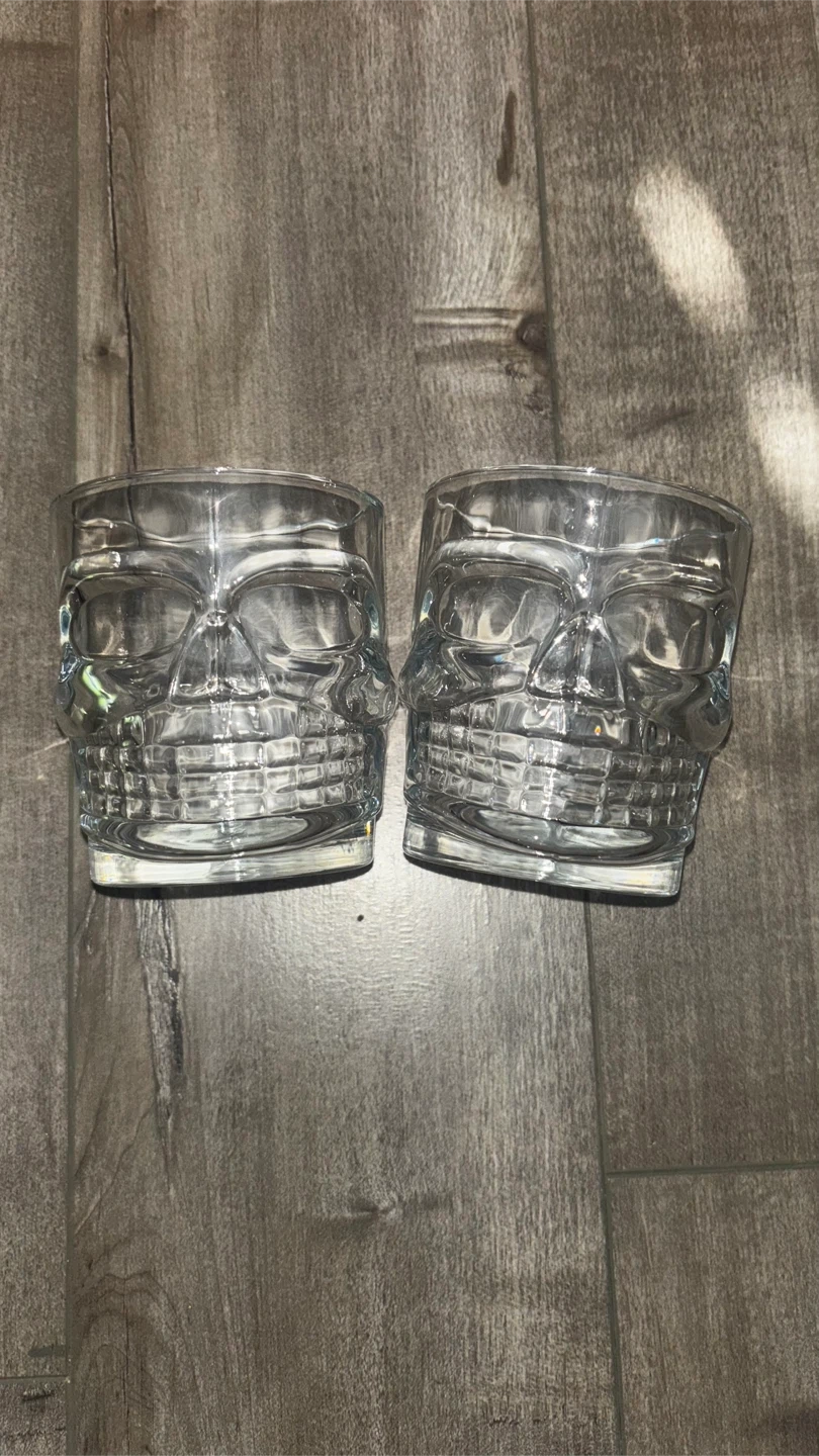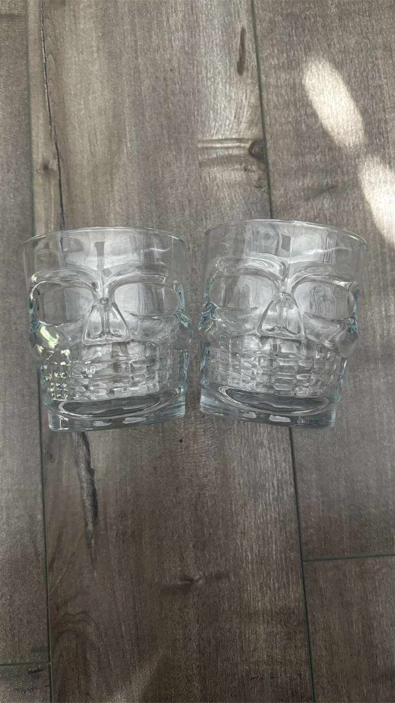 Set of two glass skull glasses