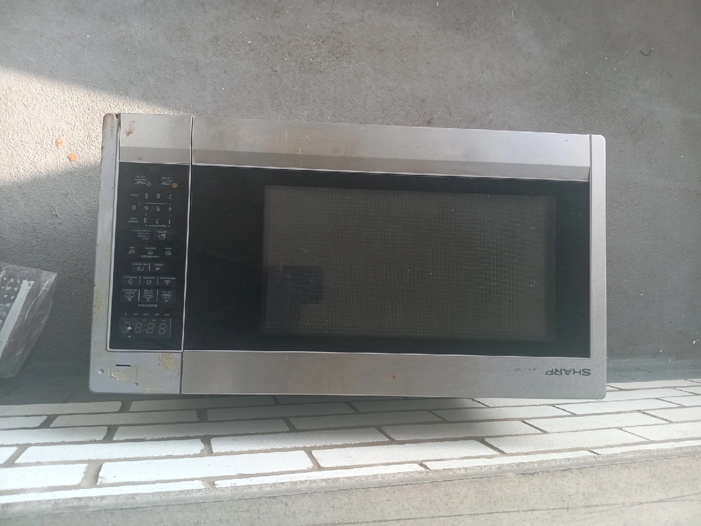 Selling a used Sharp Carousel microwave oven. It has some signs of use but is still functional maybe. Please see photos for condition, it's with the glass dish.