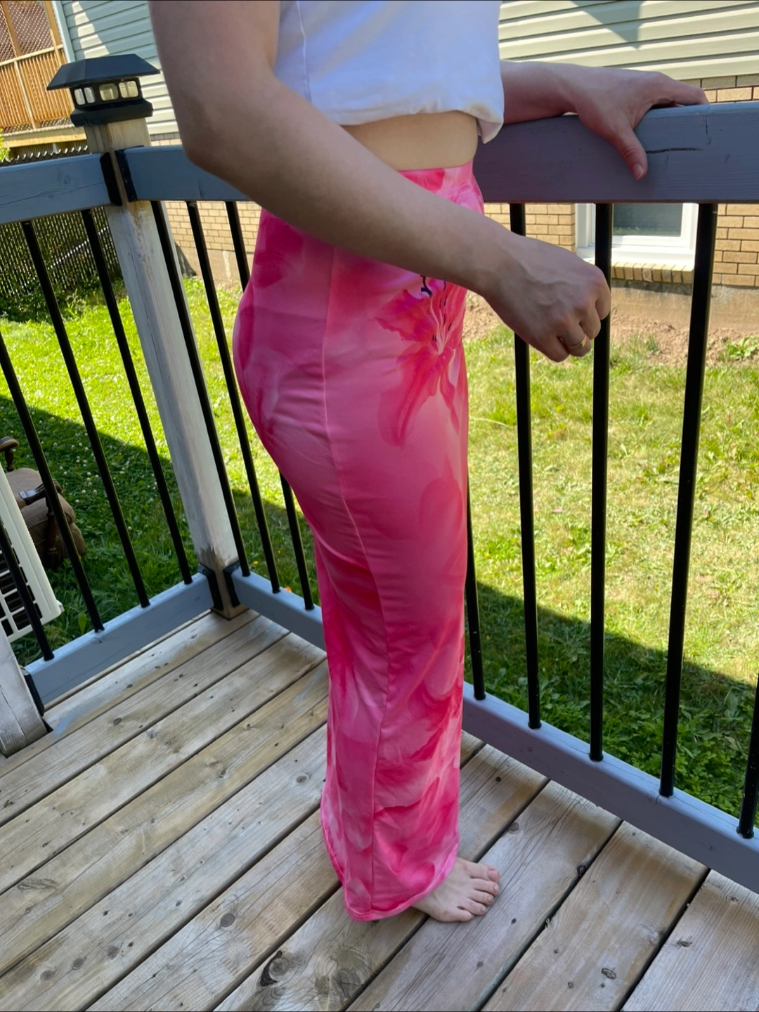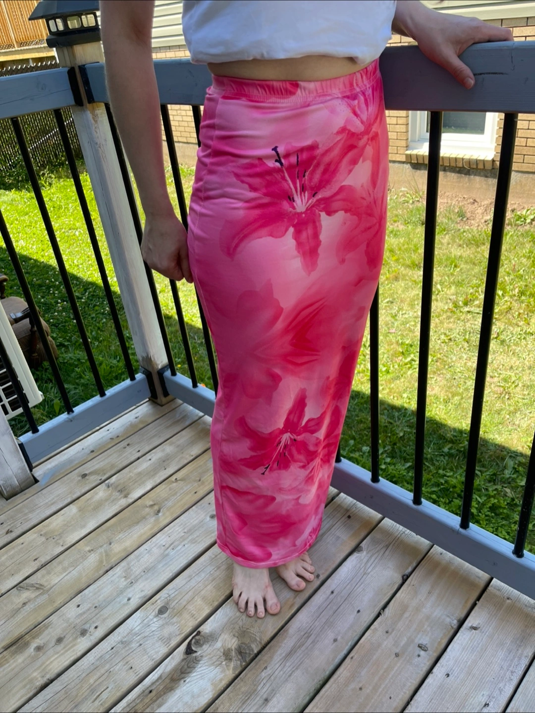 Selling a cute Shein maxi skirt in a pink floral pattern! It's a size small and would be perfect for summer. The material is lightweight and comfortable. It's in great condition and ready for a new home! Model size in the photo - M.
