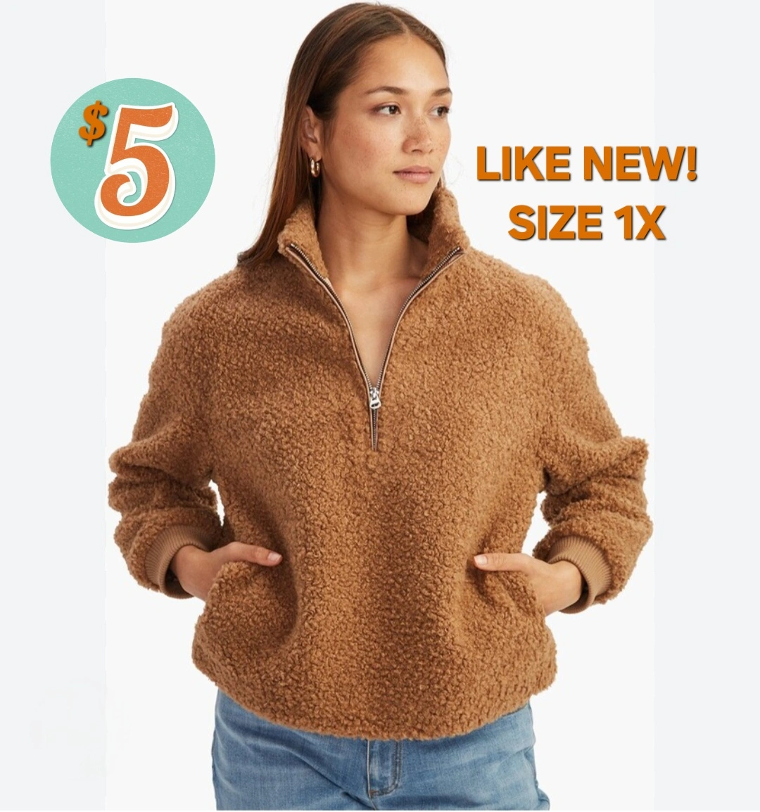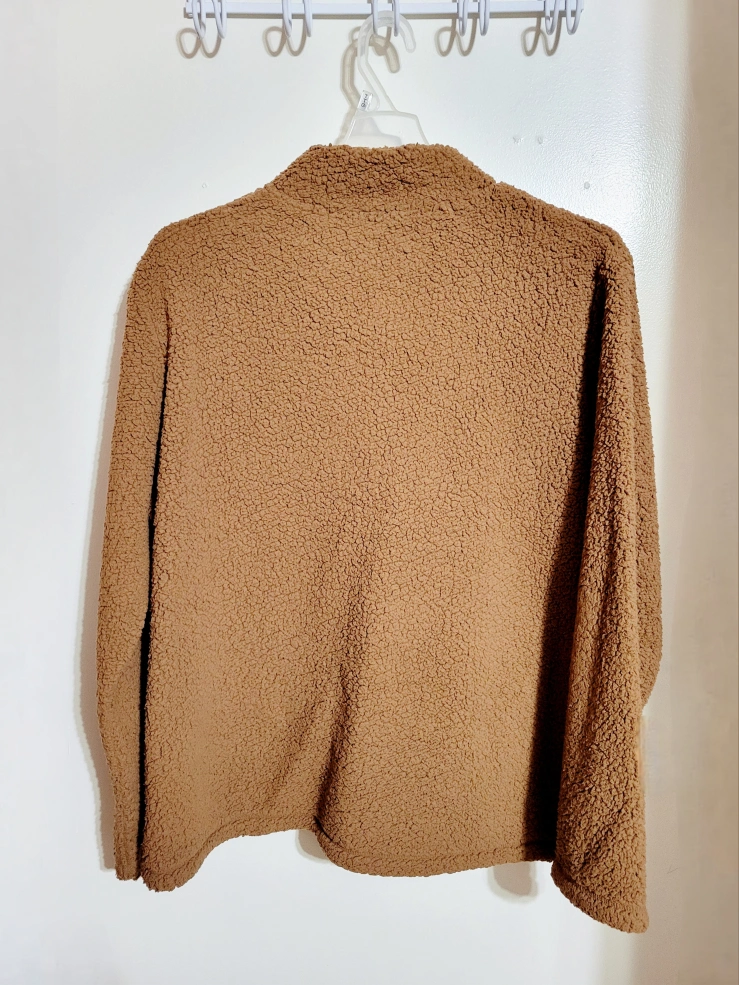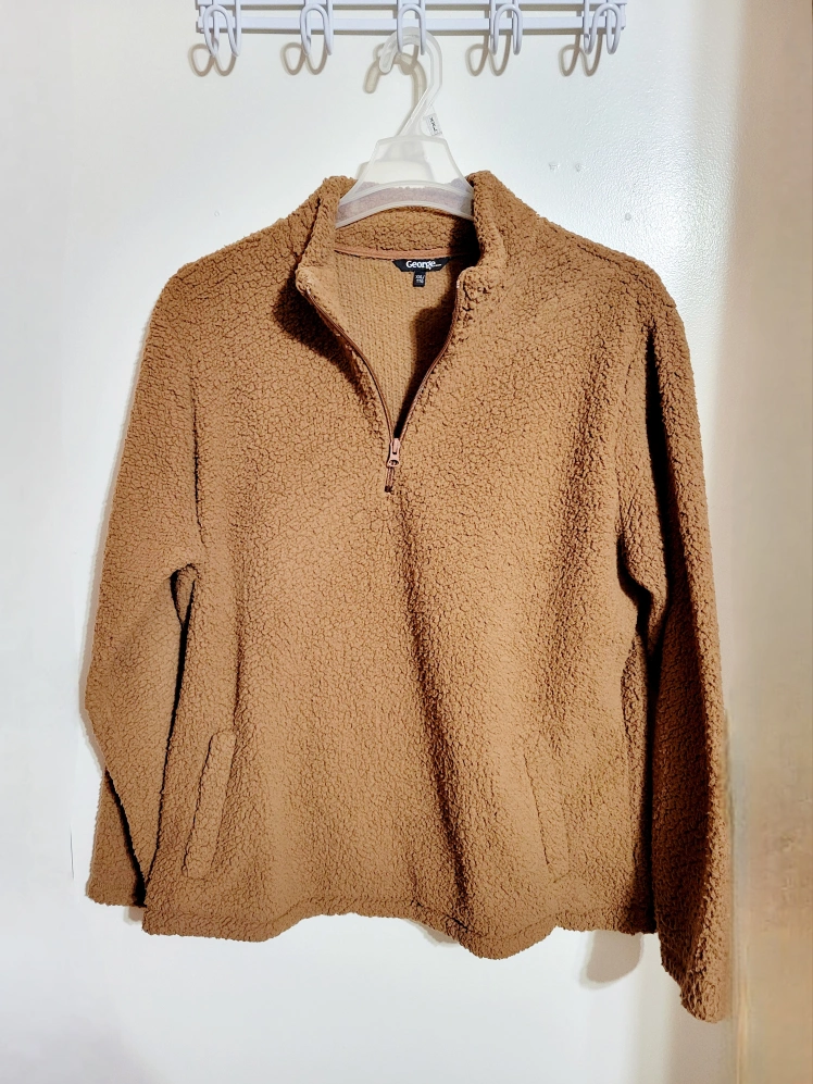 Sherpa Sweater -From: Walmart -Brand: George -VERY EXCELLENT CONDITION! -LIKE NEW! BARELY WORN! -Size: 1X (XXL) -Colour: Camel Brown -Quarter zip mock neck -Kangaroo-style pockets -Lightweight but incredibly warm -Not bulky, just very cozy & comfortable 📸PLEASE SEE PHOTO GALLERY FOR MORE DETAILS ABOUT THIS ITEM📸 Asking only $5 (FIRM & FINAL) 💰CASH ONLY, PLEASE💰 ⚠️Please only message if you are SERIOUS about buying AND you know when you'd like to pick up.⚠️ 🚙Located in North Oshawa BEATRICE & RITSON area.🚙 ⏰️No holds longer than 2 days.⏰️ ❗️CROSS POSTED❗️