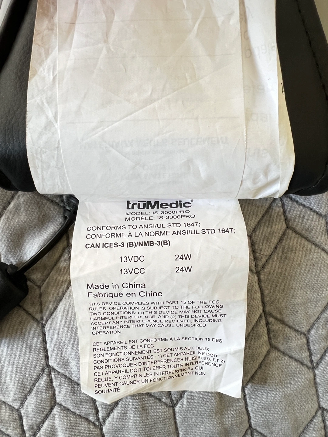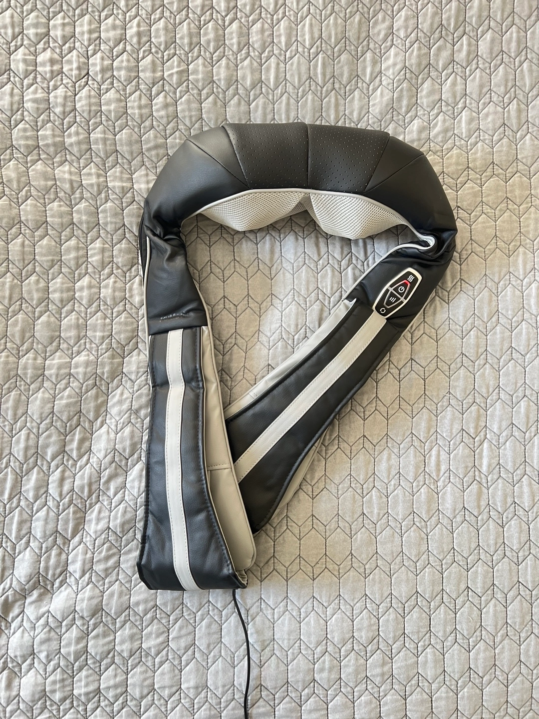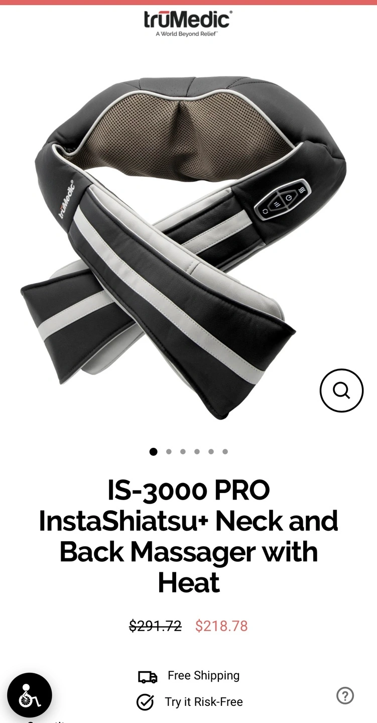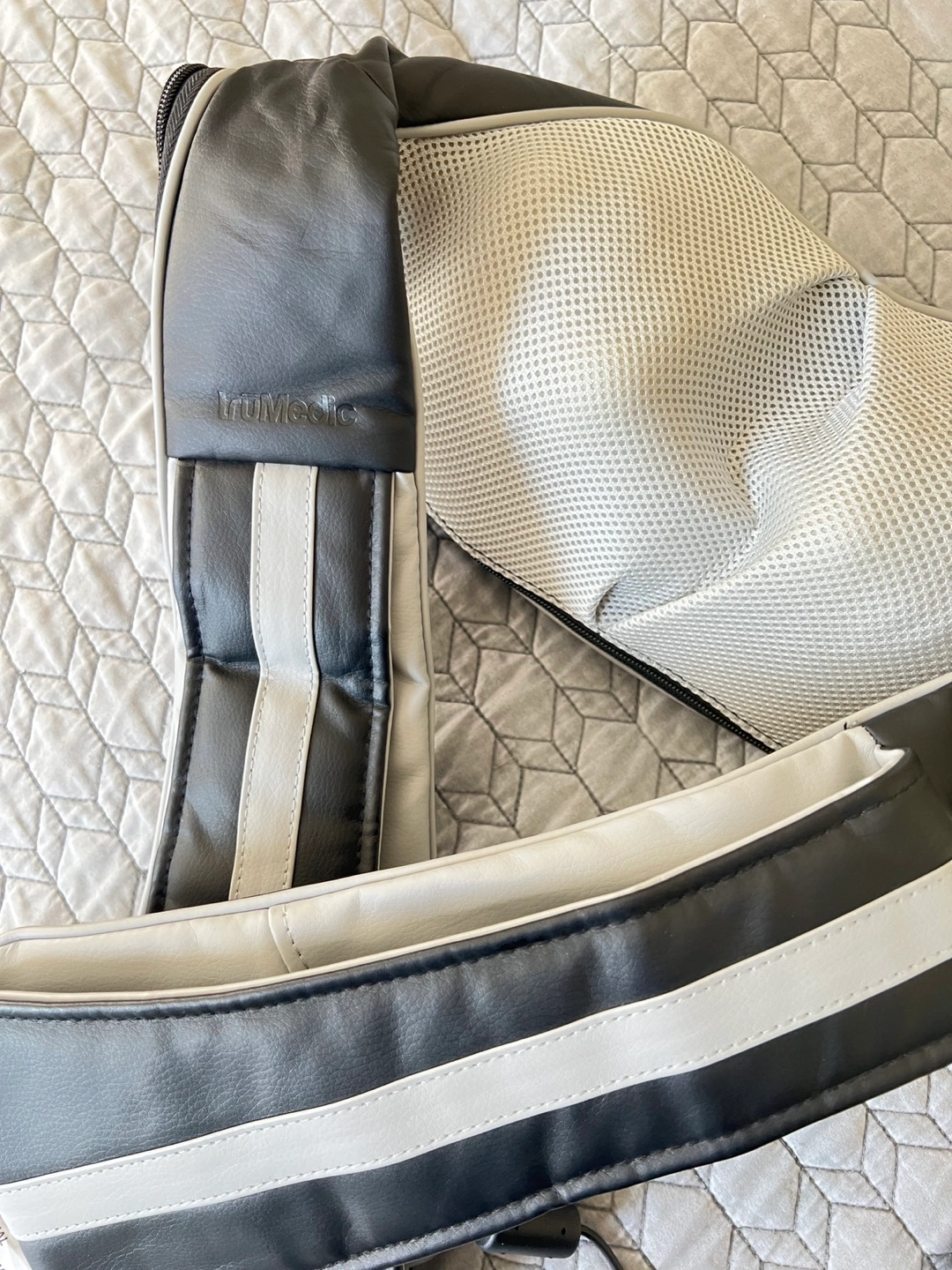 Ease muscle tension and knots. Like new. The IS-3000 InstaShiatsu™ Neck & Back Massager from truMedic® delivers soothing relief anywhere, anytime. Choose this wireless massager for an easy, portable solution to pain, stiffness and tension. Personalized Relief on Your Schedule Get the benefits of a professional massage without an appointment or needing to travel to a therapist's office. The IS-3000 InstaShiatsu™ massager delivers a heated massage at the touch of a button. There are no wires or cords to worry about, and you don't have to navigate any complex procedures. Simply place the device where your muscles ache, choose between three speed settings, add heat if you like, and let the custom massage experience melt away all your stress and tension. The long-lasting li-Ion battery charges quickly, and an auto-shutoff activates after 20 minutes of use. Targeted Massage with Soothing Heat Use the IS-3000 InstaShiatsu™ whenever stress and soreness are getting you down. This wireless massager kneads away tension in your neck, shoulders, upper back, lower back, legs and more. Control the placement and intensity of your massage with the convenient arm straps. Change up the rotation of the massage nodes to target areas of your body while choosing the speed that gets the job done. Whether you've got a stiff neck from sleeping wrong, sore quads from overdoing it at the gym or your lower back aches from hunching over your computer, this portable massager offers fast, targeted relief.