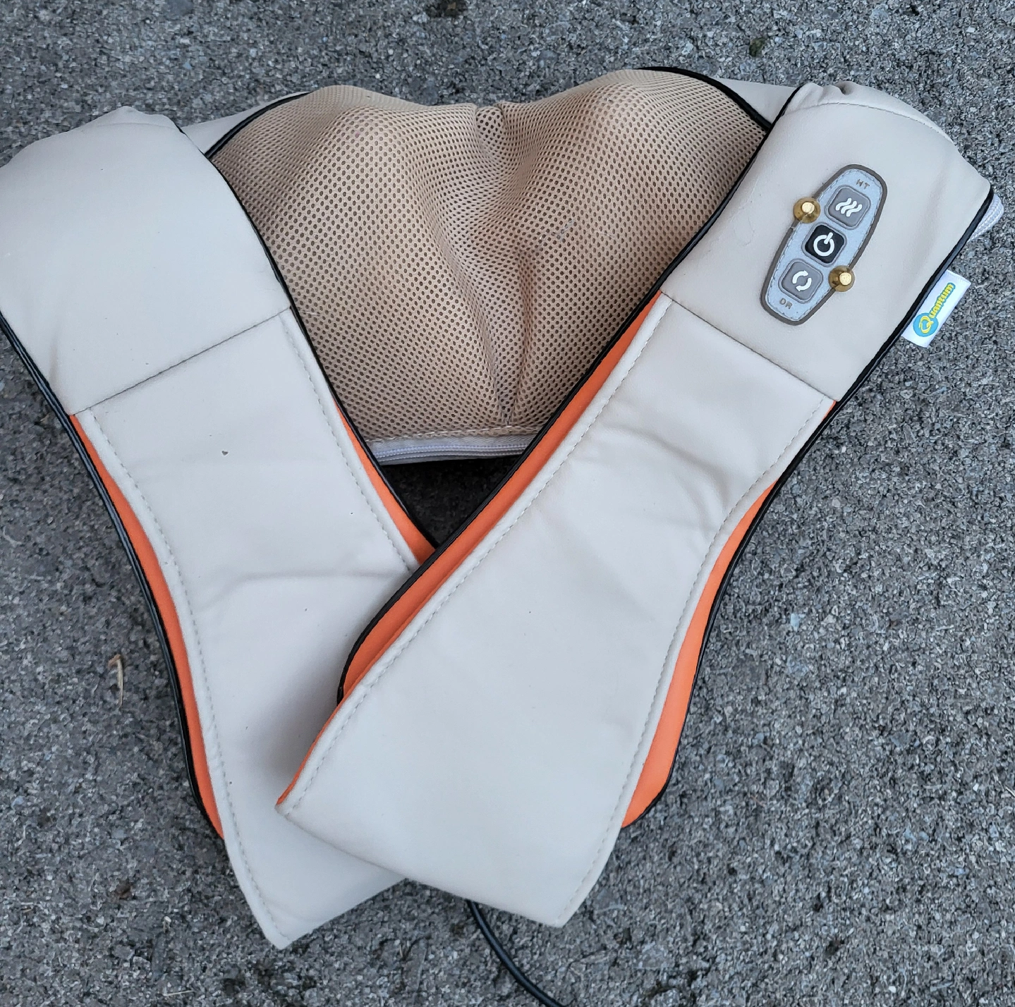 This is a neck and shoulder massager that kneads to relieve tension and stress. It's in great condition and ready to help you relax after a long day.