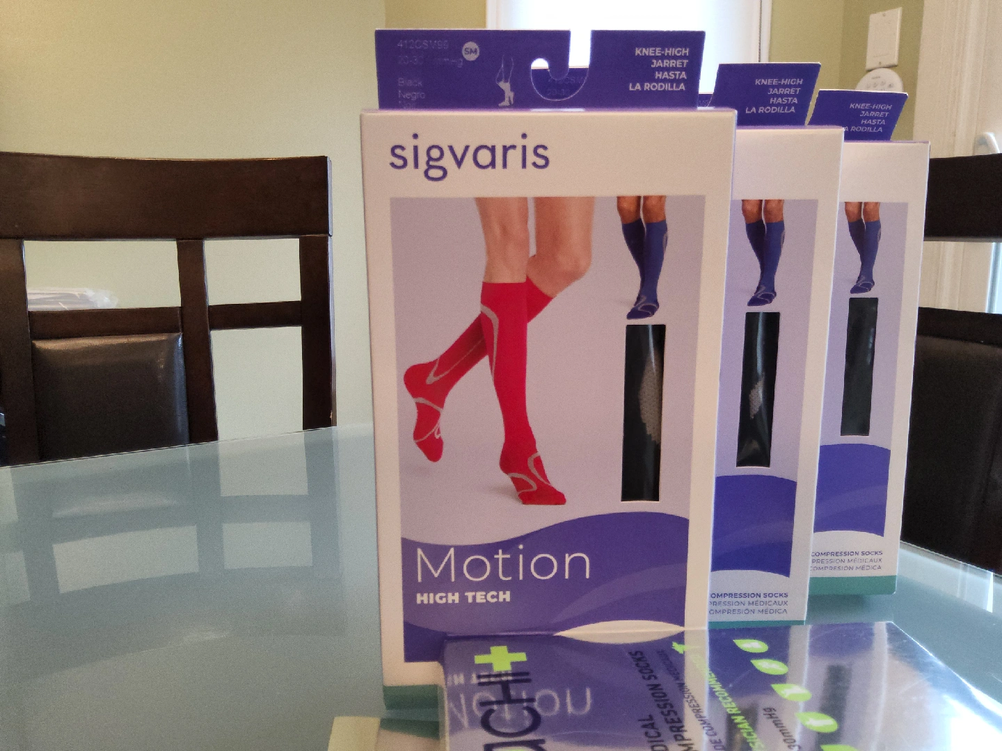 Selling new Sigvaris Motion High Tech compression socks in size small. These are knee-high socks designed to provide 20-30 mmHg compression. Available in black. Great for medical compression needs!